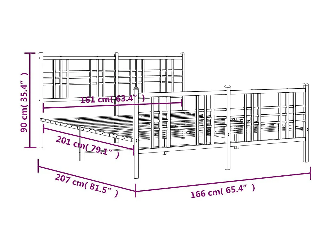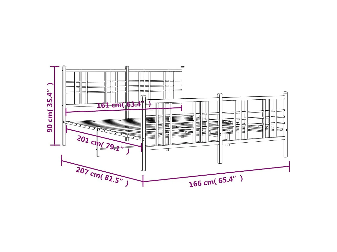 Cadre de lit métal sans matelas et pied de lit blanc 160x200 cm