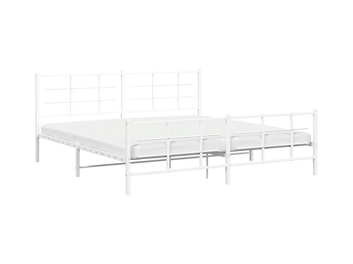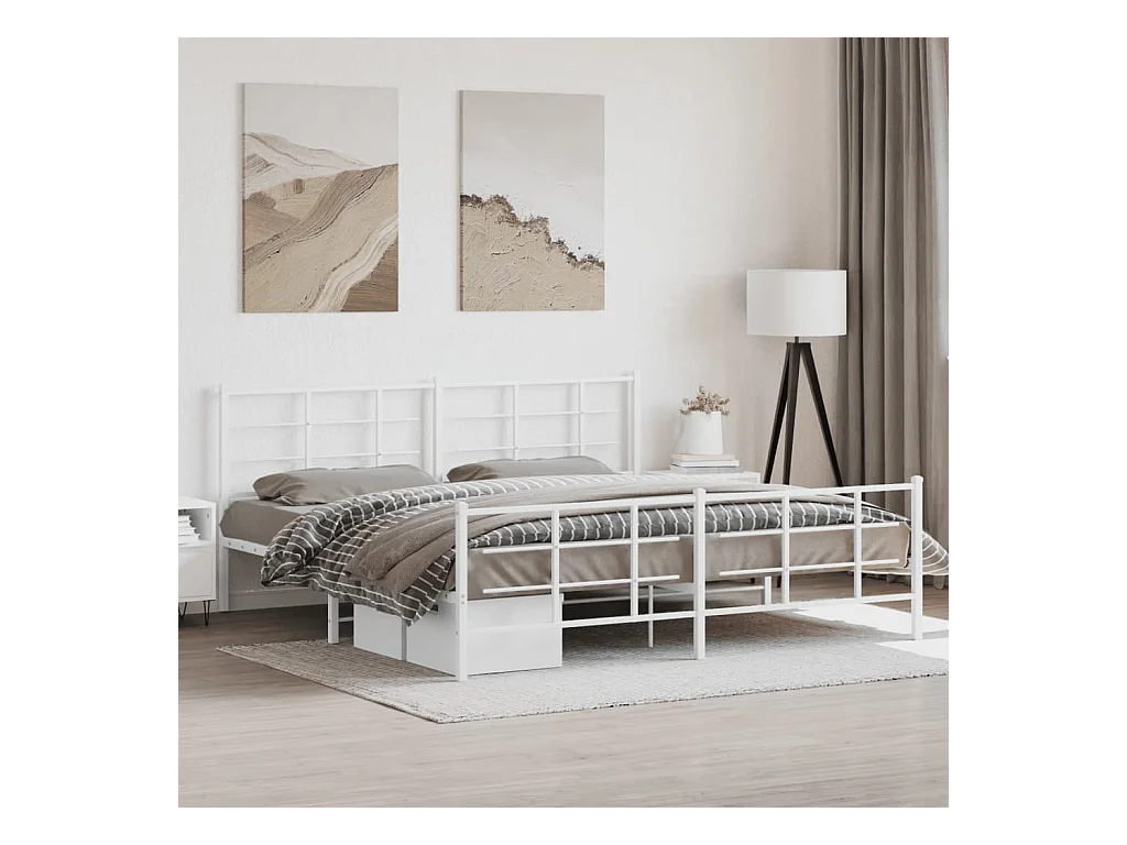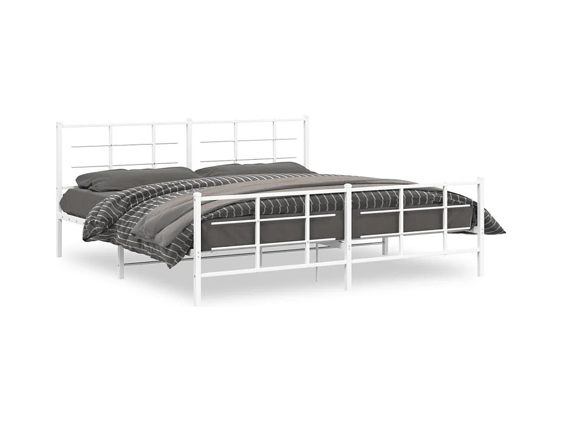 Cadre de lit métal sans matelas et pied de lit blanc 193x203 cm
