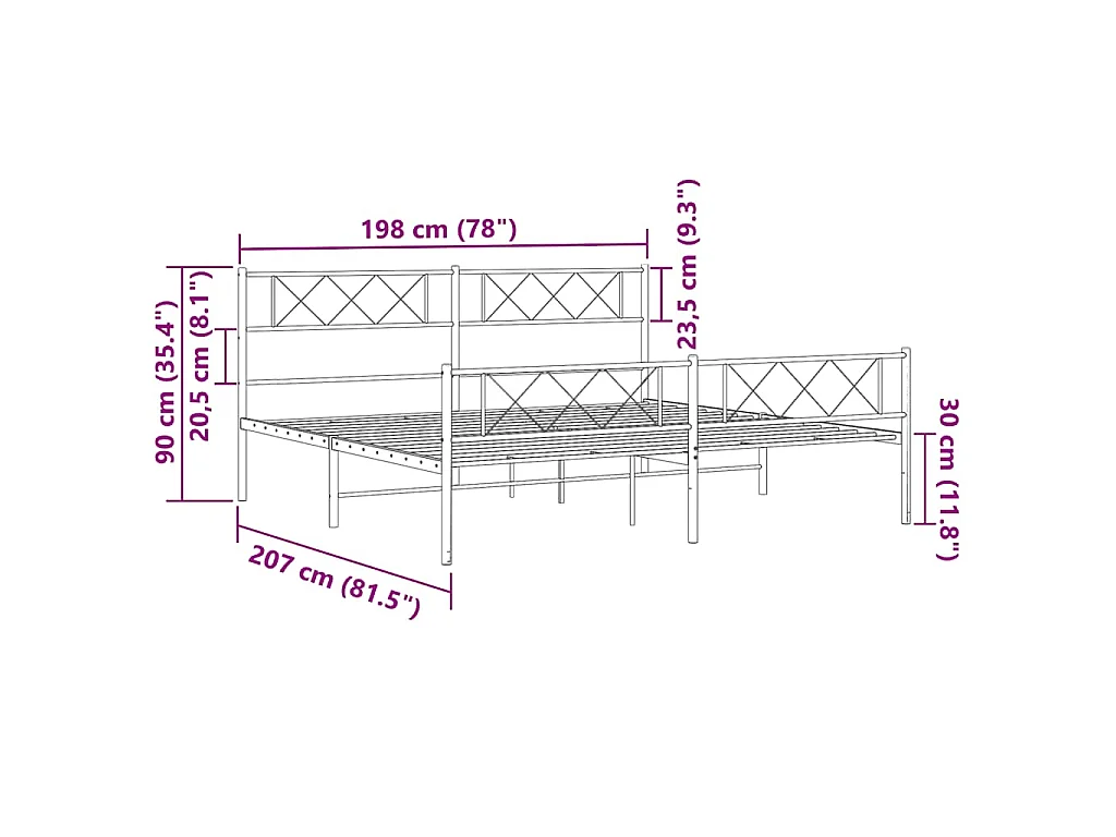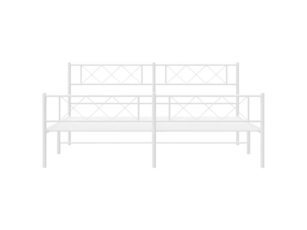 Cadre de lit métal sans matelas et pied de lit blanc 193x203 cm