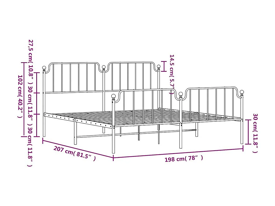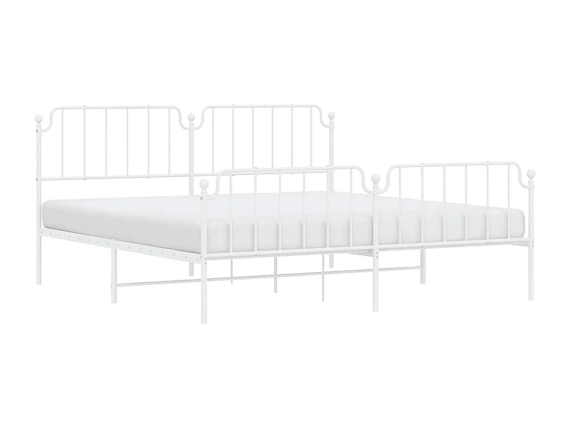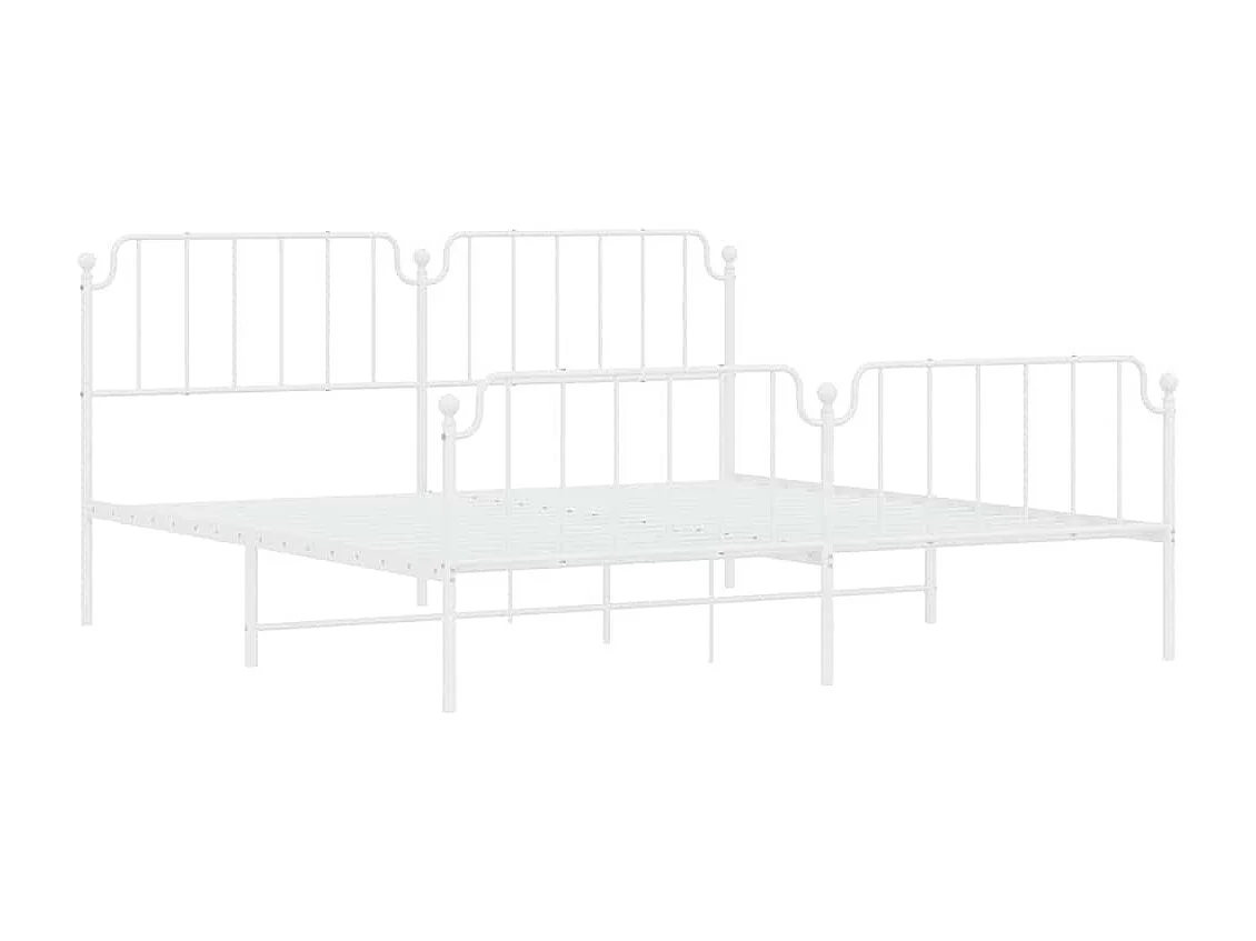 Cadre de lit métal sans matelas et pied de lit blanc 193x203 cm