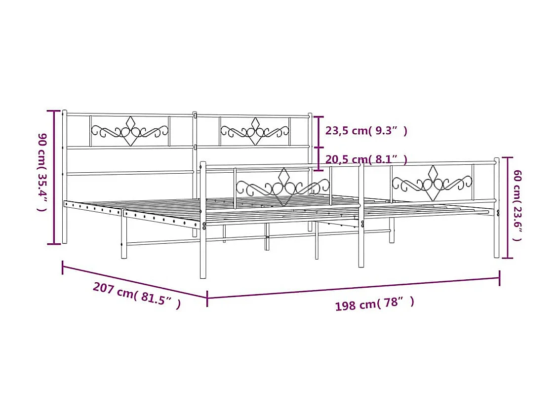 Cadre de lit métal sans matelas et pied de lit blanc 193x203 cm