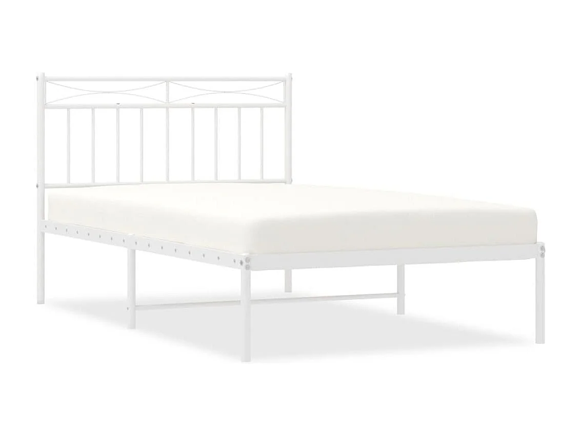 Cadre de lit métal sans matelas et tête de lit blanc 107x203 cm