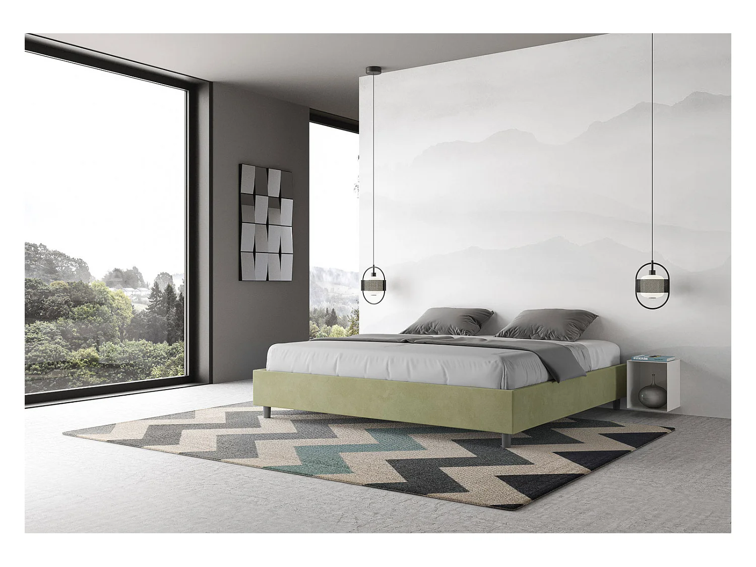 Lit coffre rembourré 180x200 microfibre vert Azelia