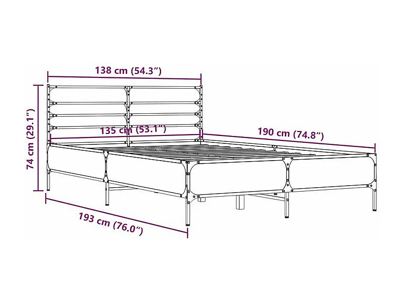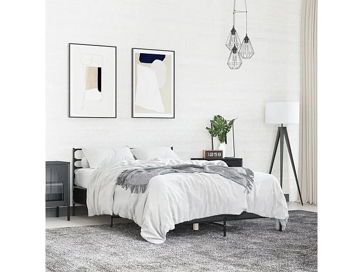 Cadre de lit noir 135x190 bois d'ingénierie et métal