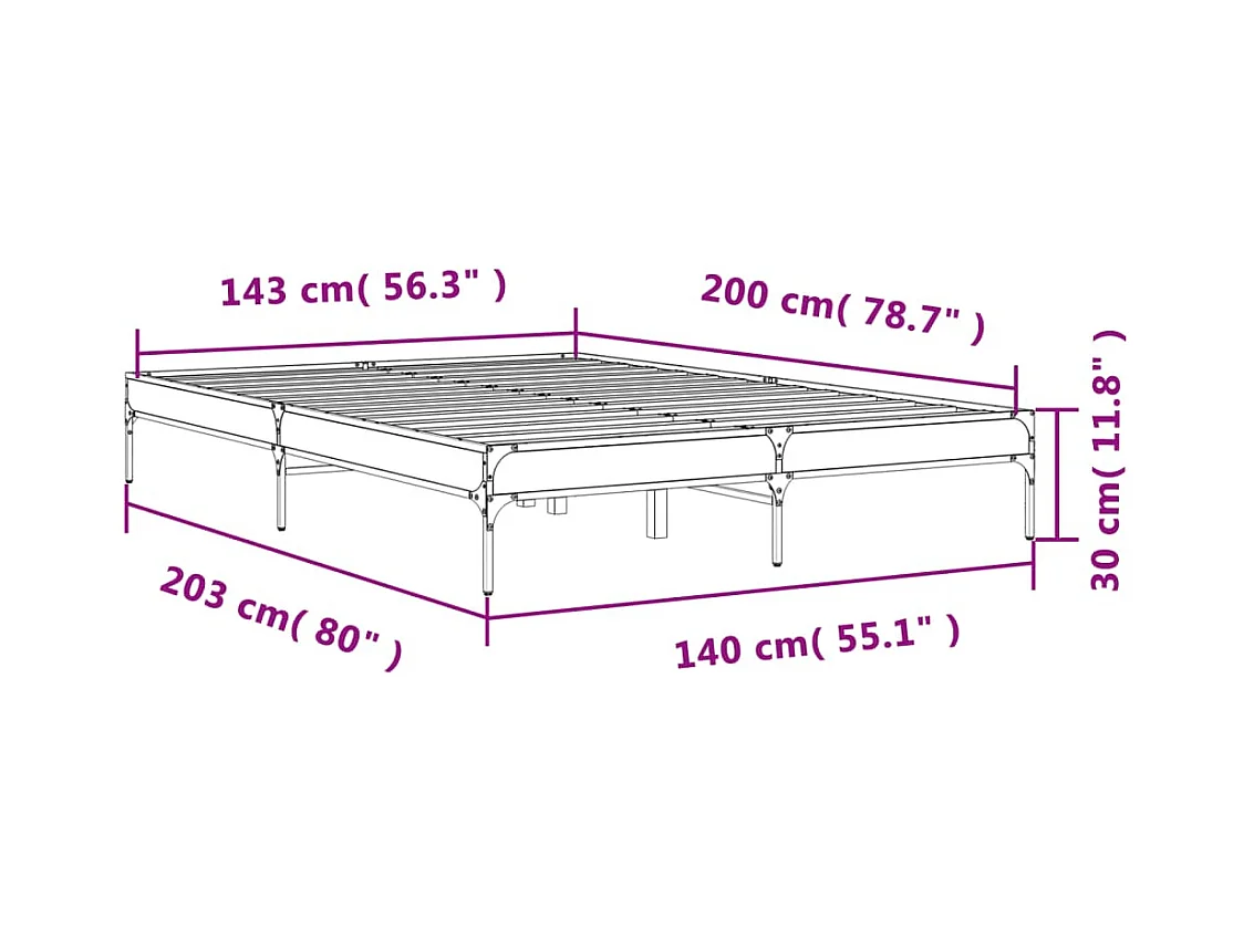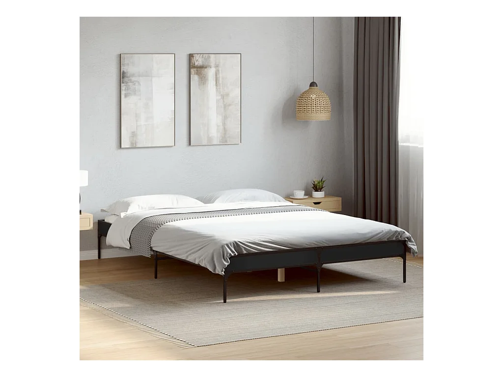 Cadre de lit noir 140x200 bois d'ingénierie et métal