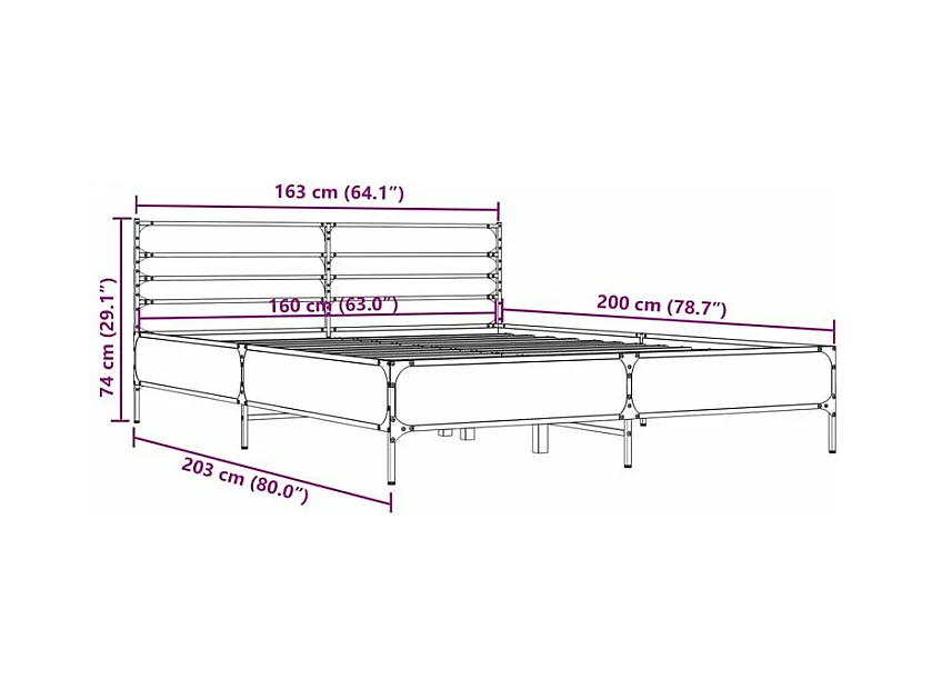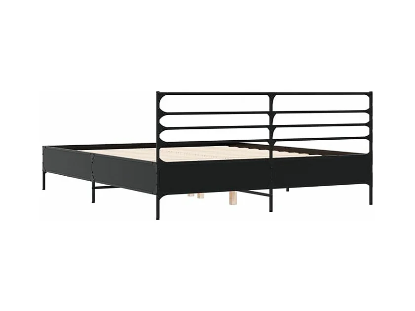 Cadre de lit noir 160x200 bois d'ingénierie et métal