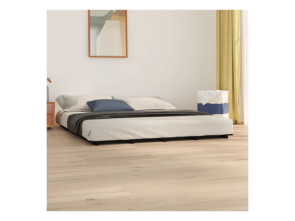 Cadre de lit Noir 200x200 Bois de pin massif