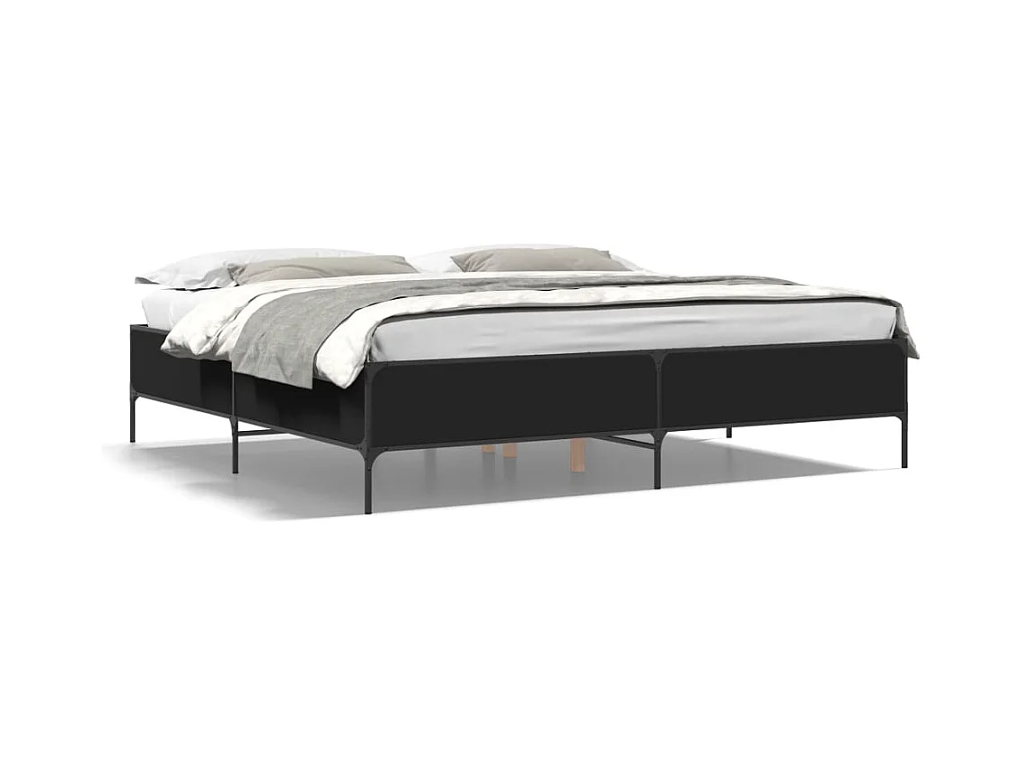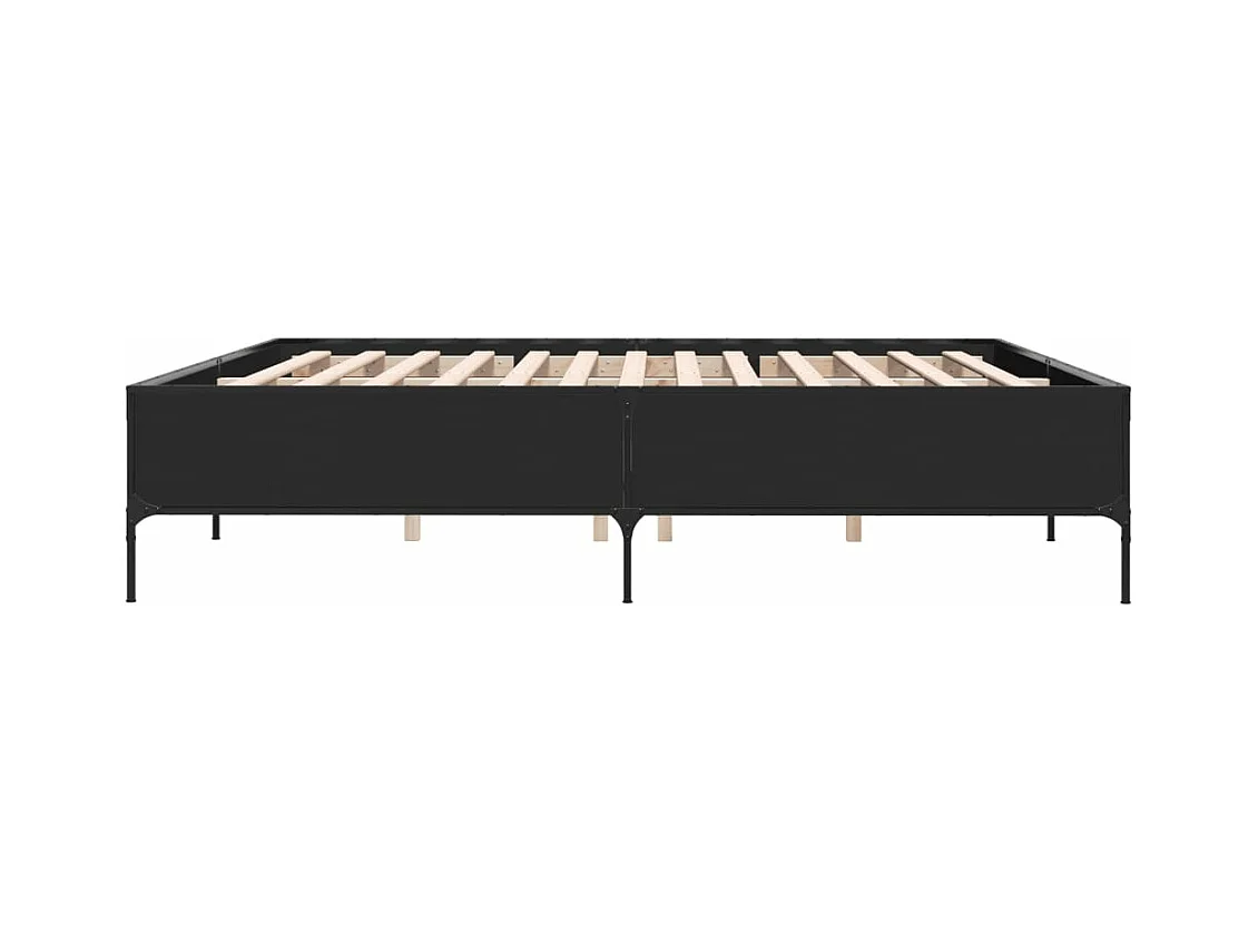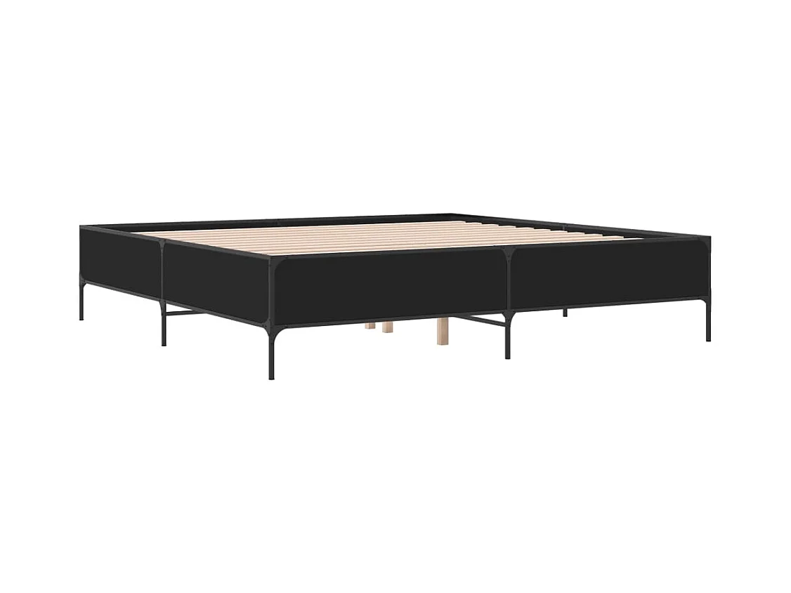 Cadre de lit noir 200x200 cm bois d'ingénierie et métal