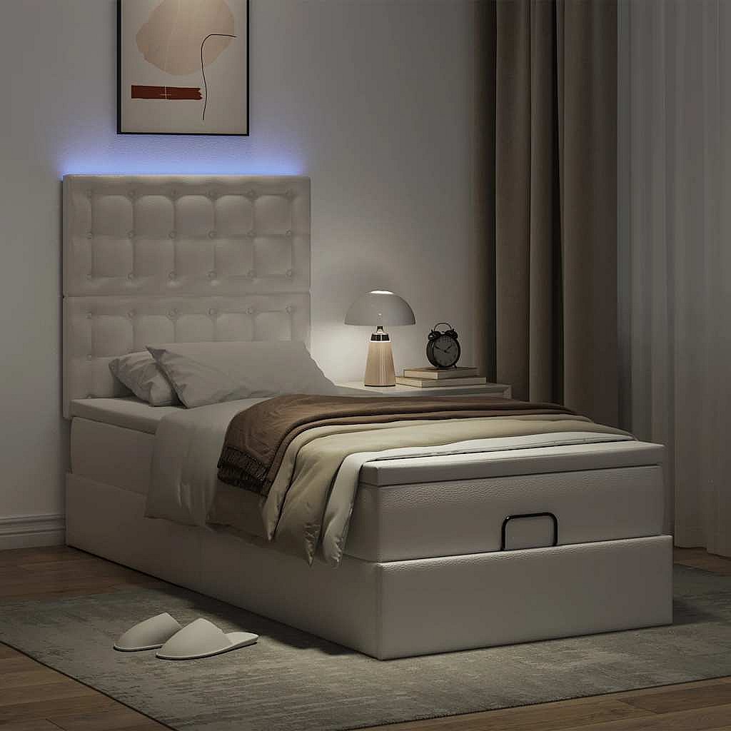 Cadre de lit ottoman avec matelas blanc 90x190 cm similicuir