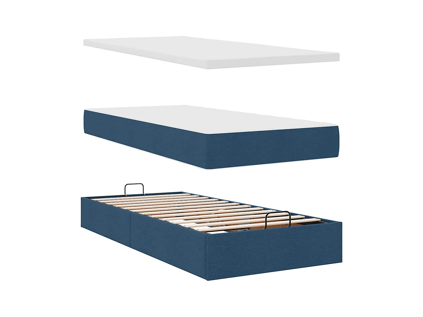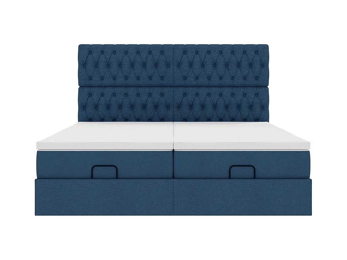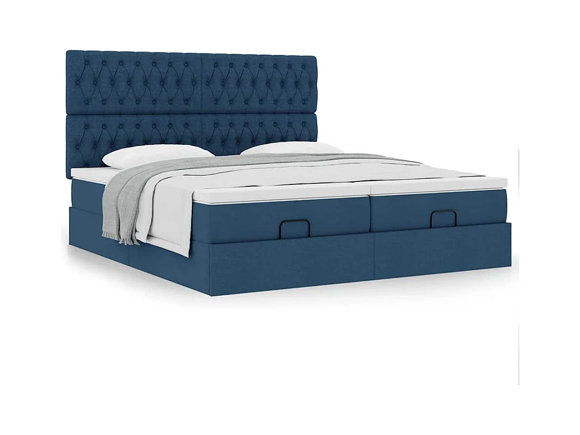 Cadre de lit ottoman avec matelas bleu 180x200 cm tissu