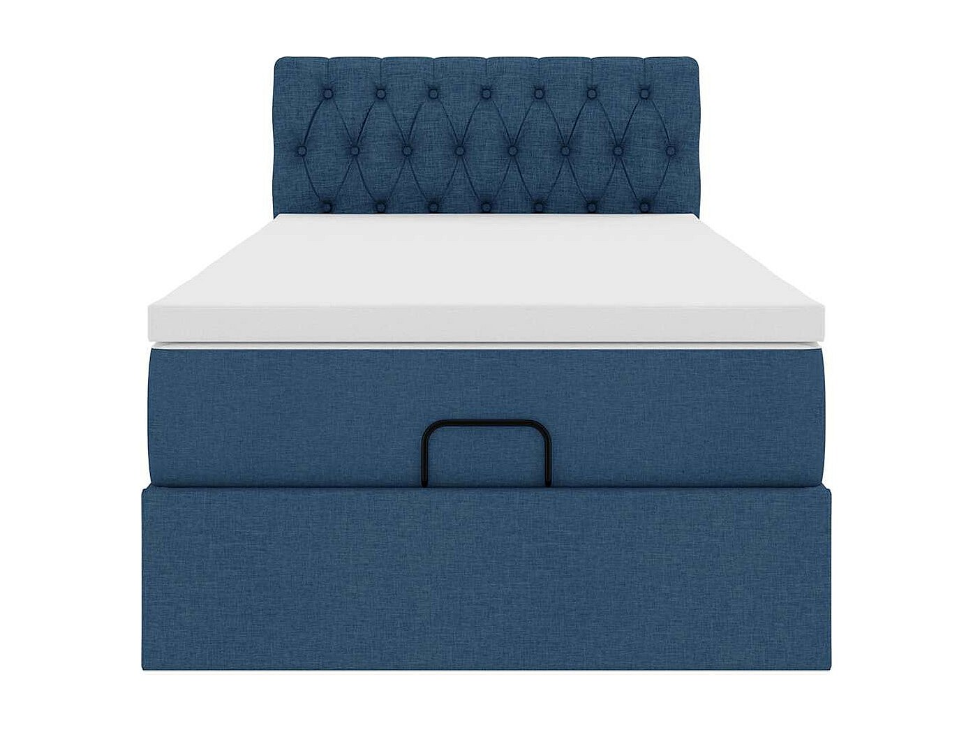 Cadre de lit ottoman avec matelas bleu 90x190 cm tissu