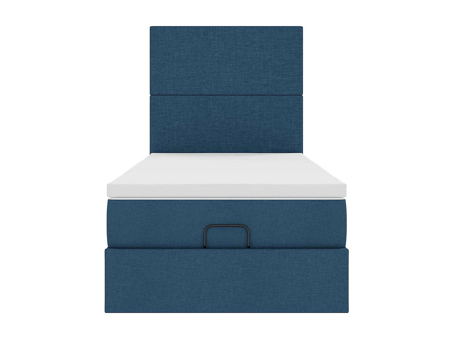 Cadre de lit ottoman avec matelas bleu 90x200 cm tissu