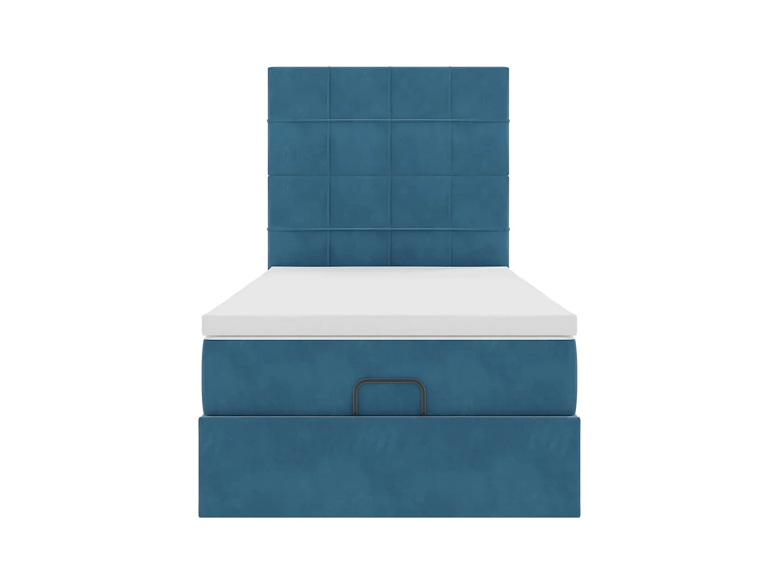 Cadre de lit ottoman avec matelas bleu foncé 100x200 cm velours