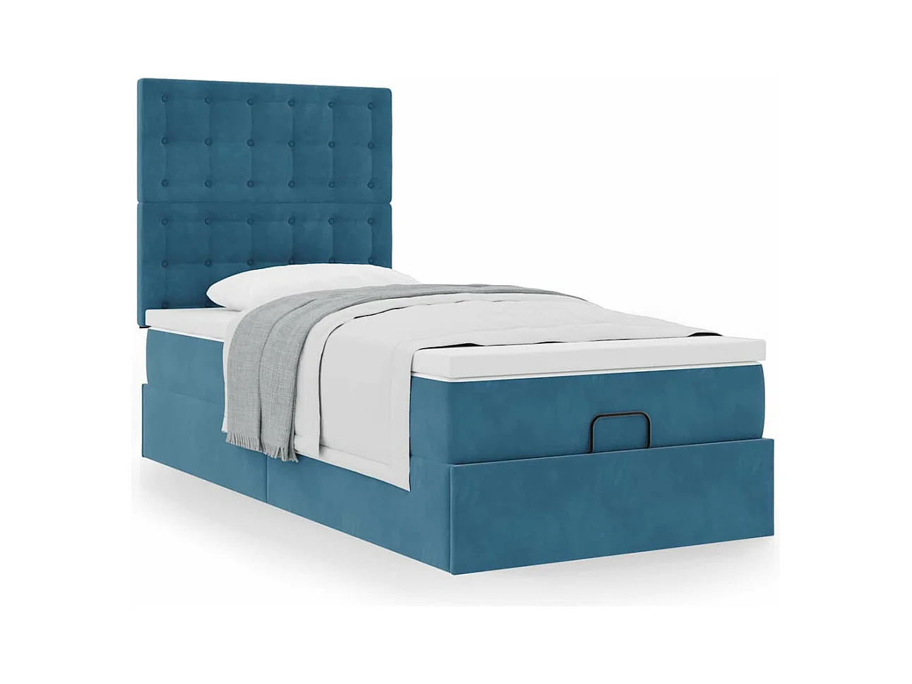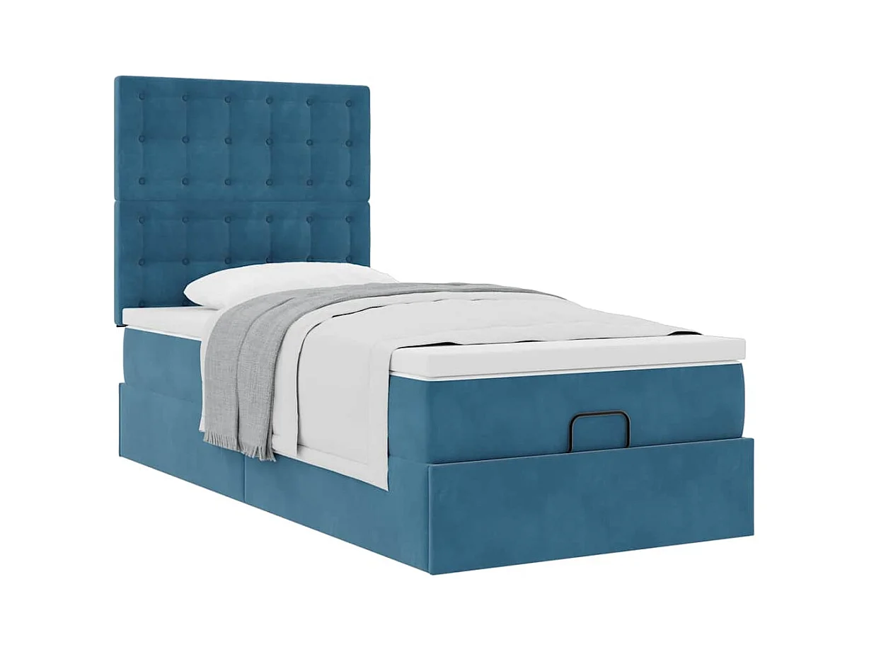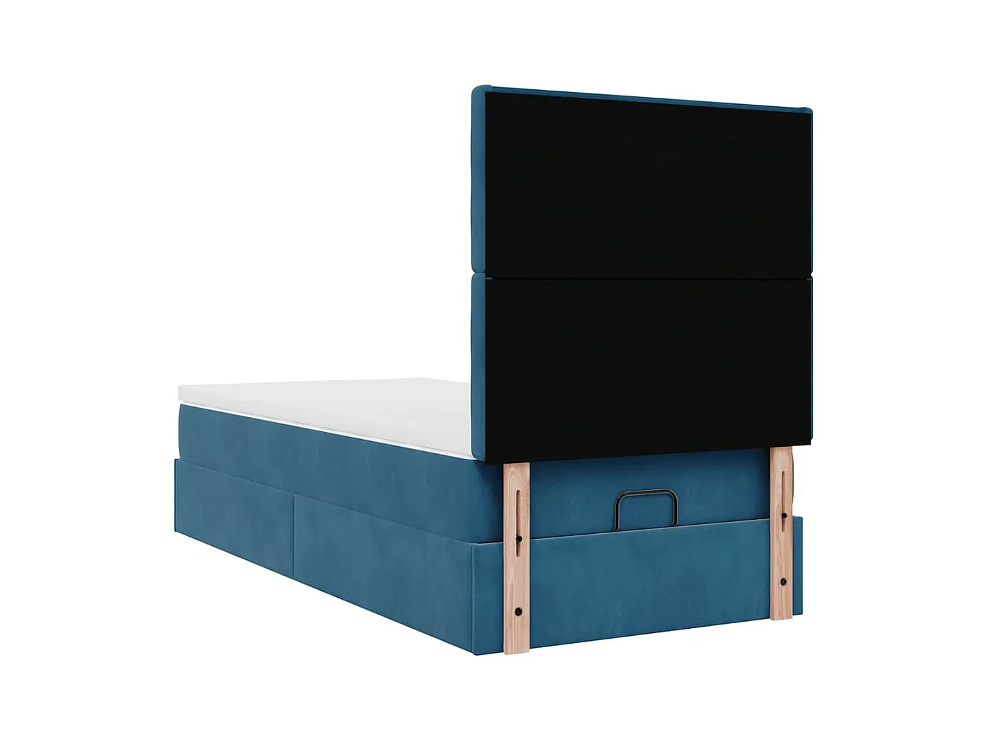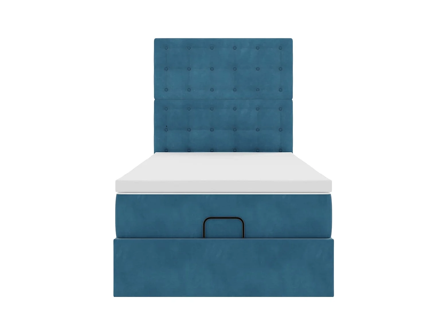 Cadre de lit ottoman avec matelas bleu foncé 100x200 cm velours