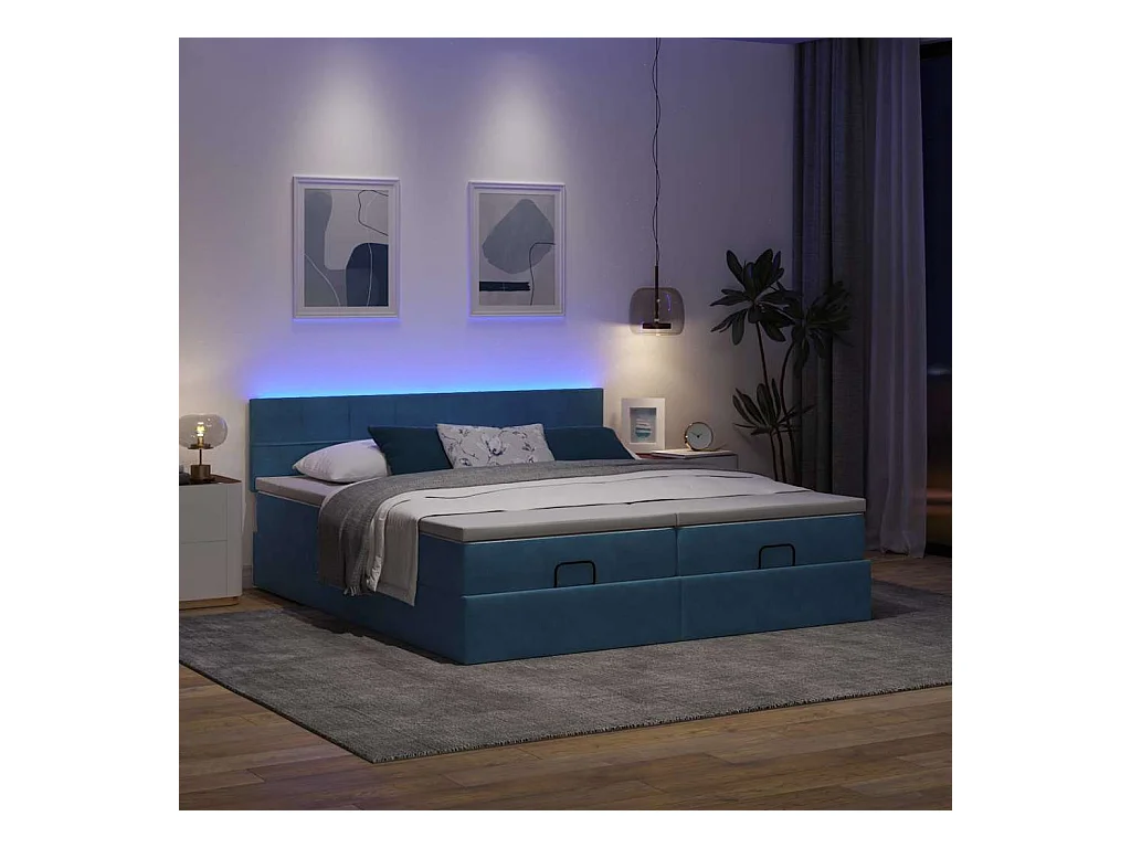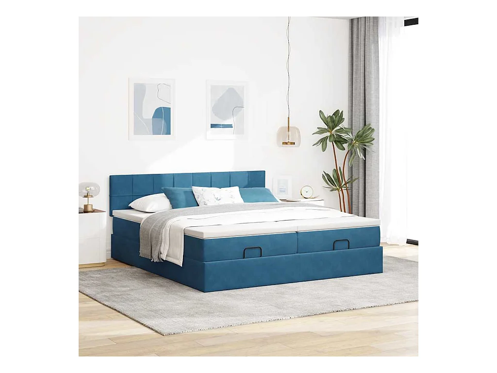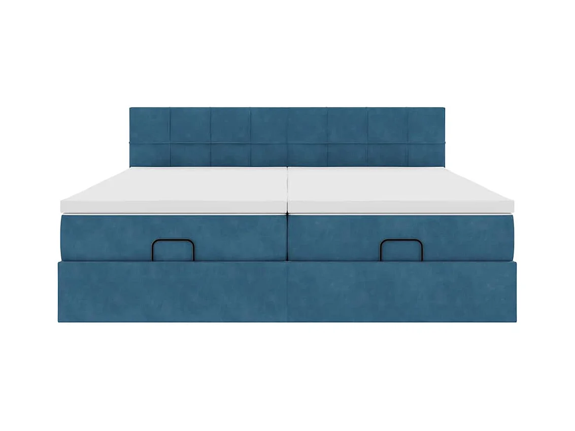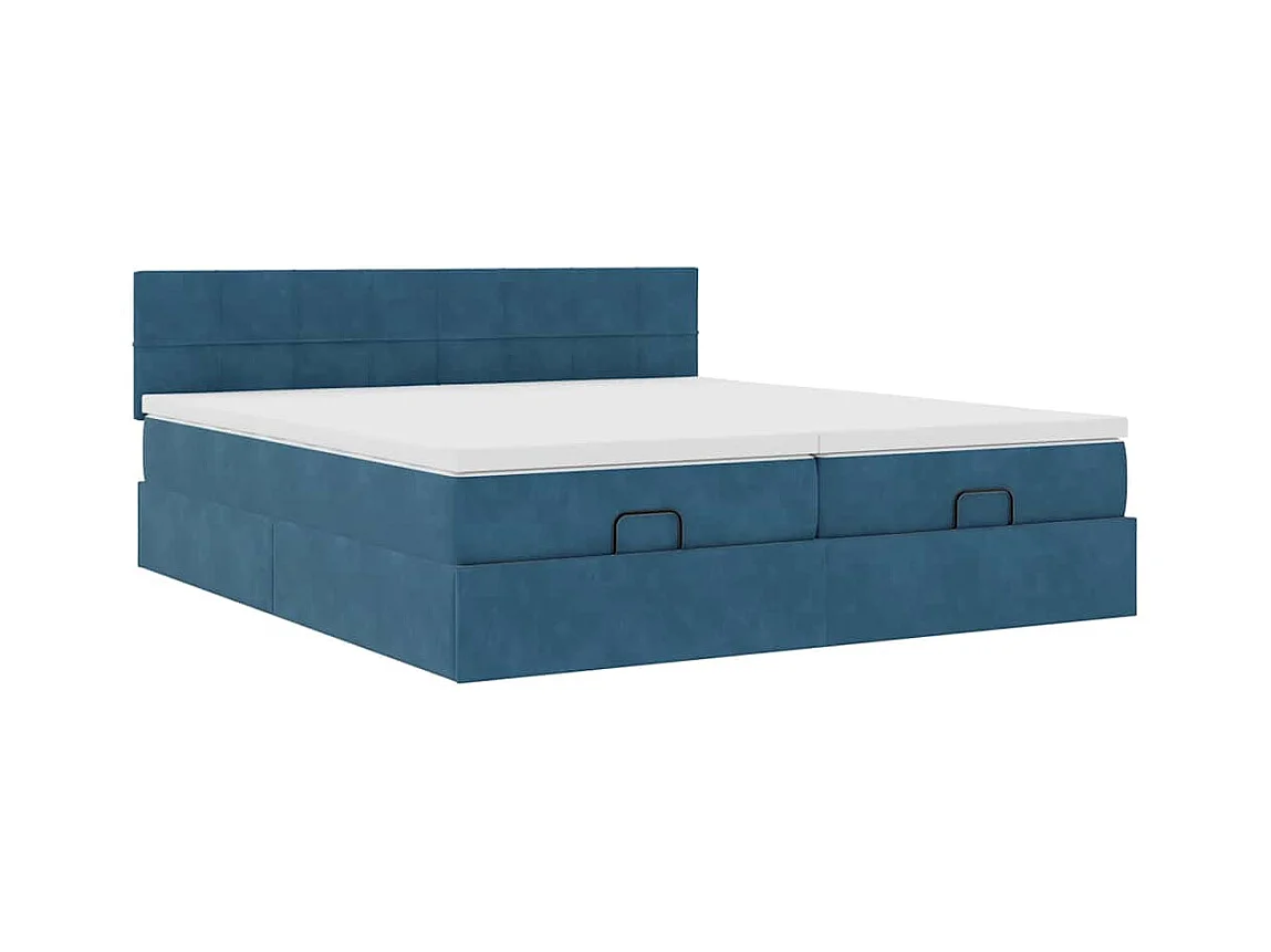 Cadre de lit ottoman avec matelas bleu foncé 160x200 cm velours