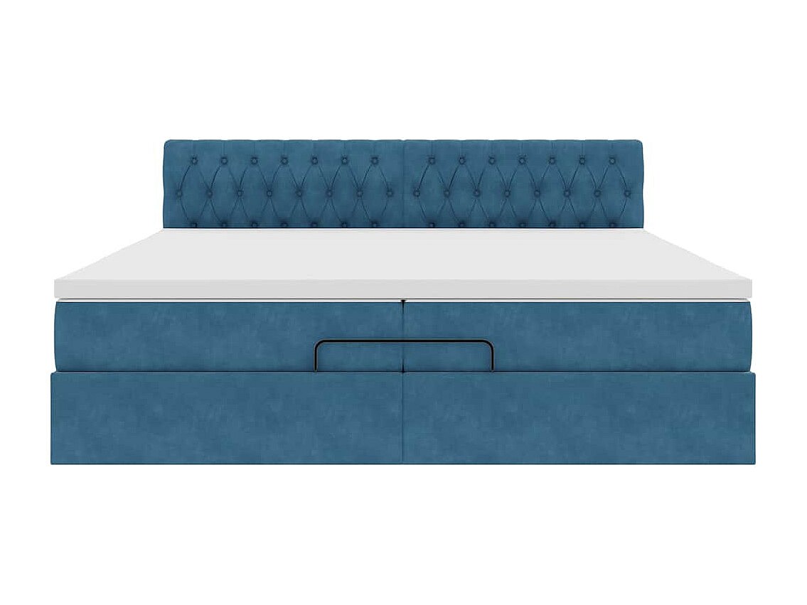 Cadre de lit ottoman avec matelas bleu foncé 200x200 cm velours