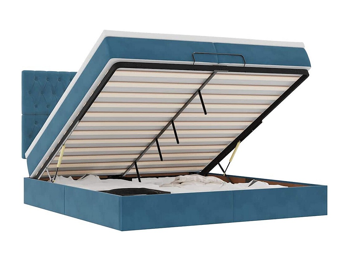 Cadre de lit ottoman avec matelas bleu foncé 200x200 cm velours