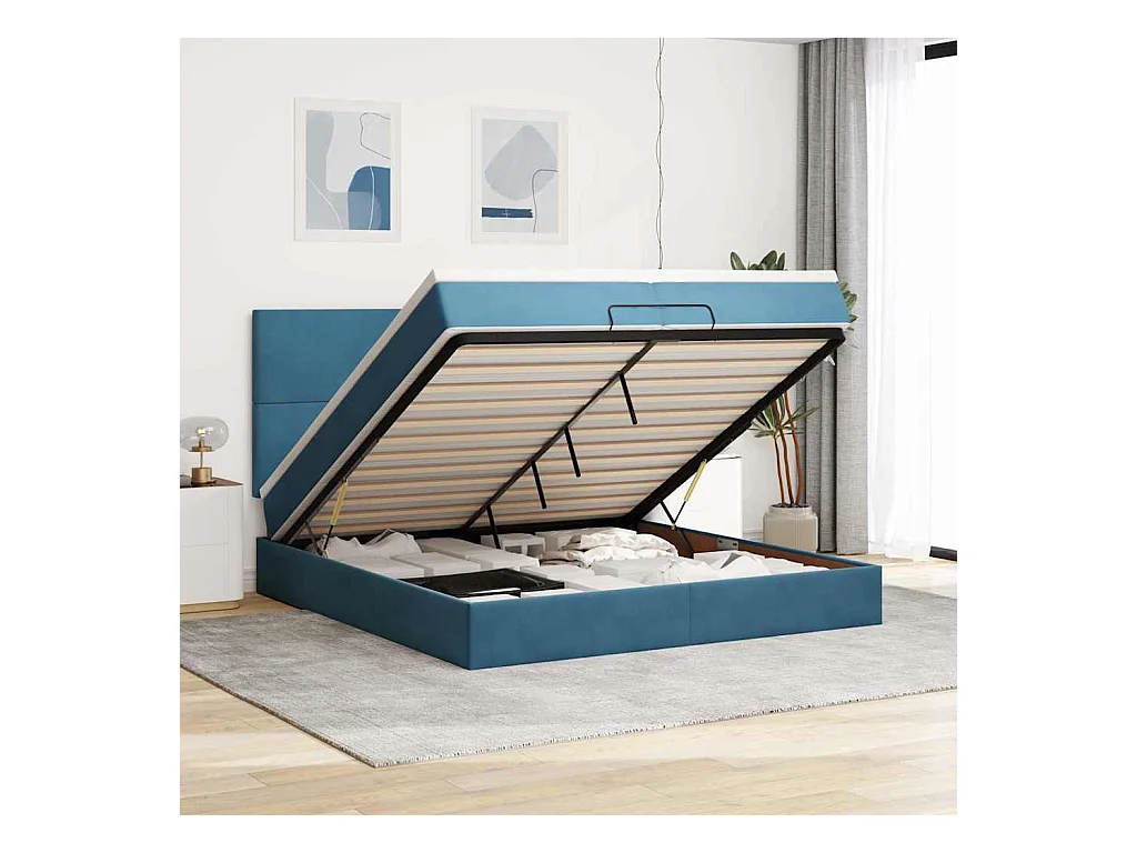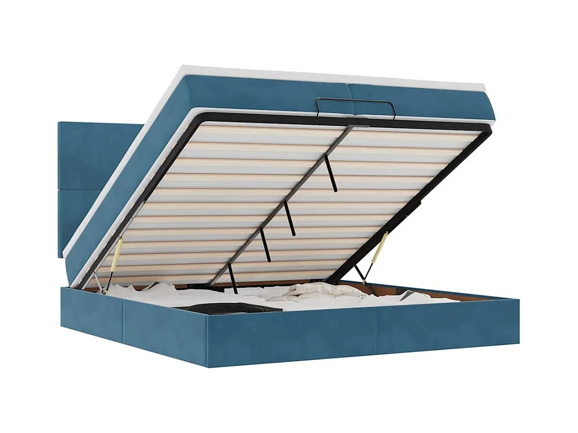 Cadre de lit ottoman avec matelas bleu foncé 200x200 cm velours