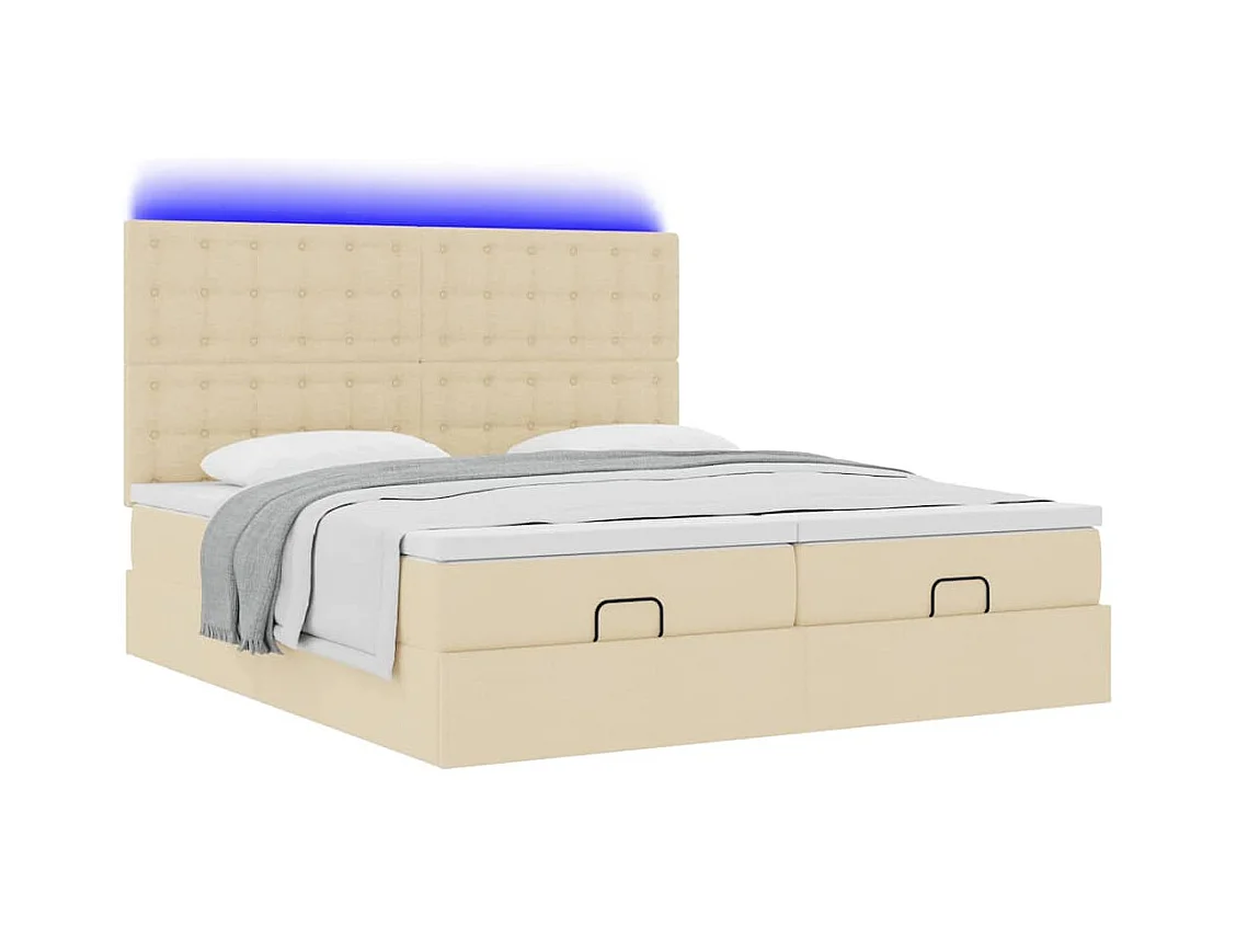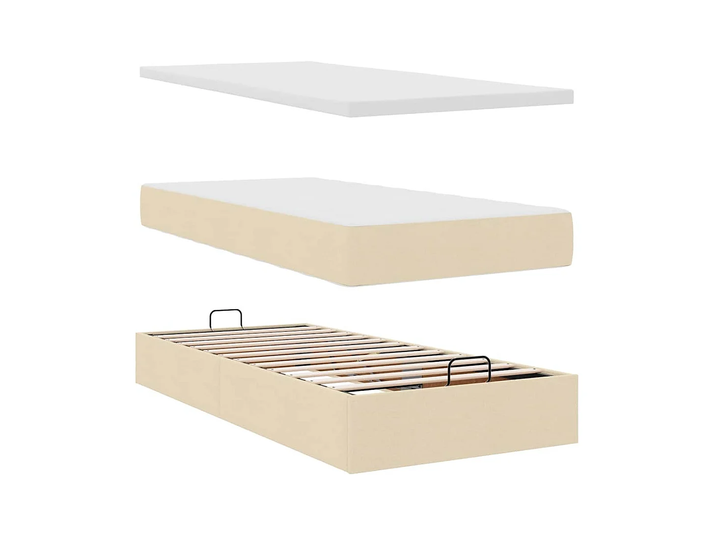 Cadre de lit ottoman avec matelas crème 160x200 cm tissu