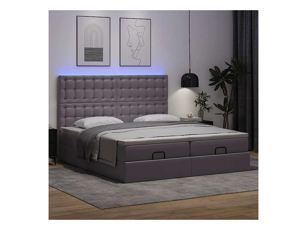 Cadre de lit ottoman avec matelas gris 200x200 cm similicuir