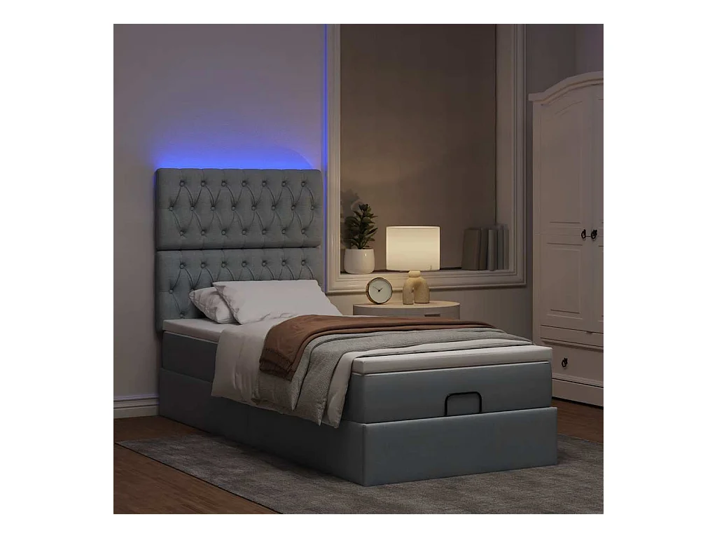 Cadre de lit ottoman avec matelas gris clair 80x200 cm tissu