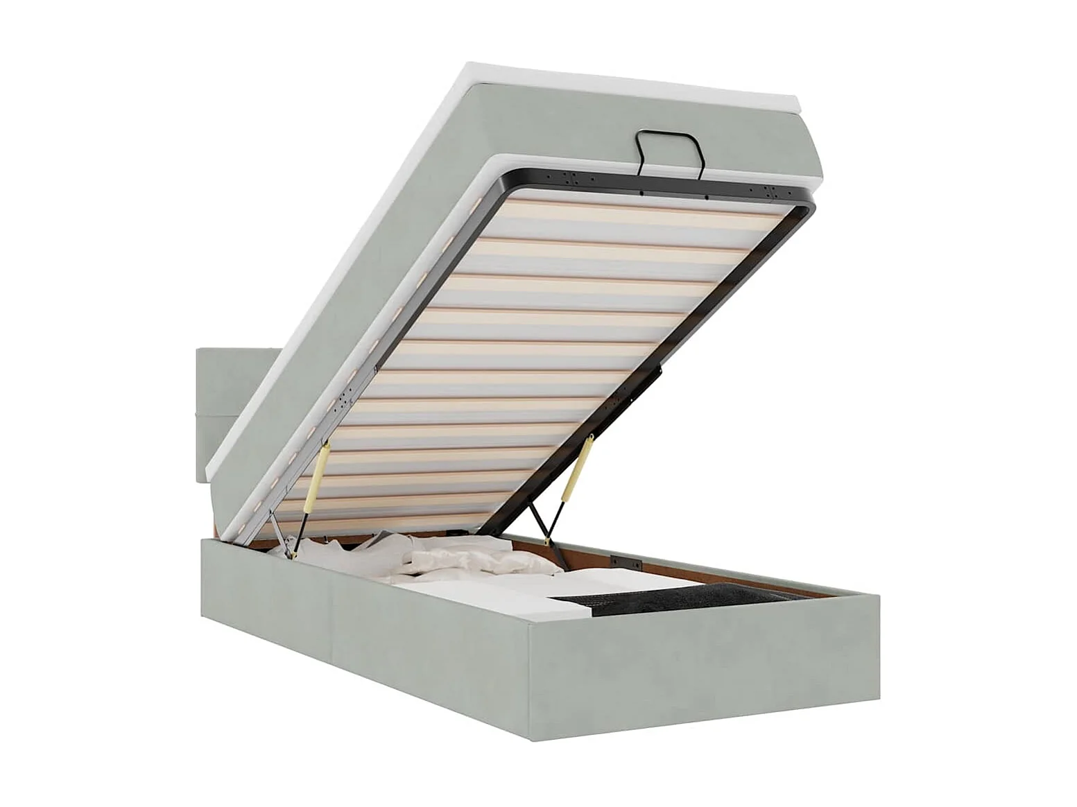 Cadre de lit ottoman avec matelas gris clair 80x200 cm velours