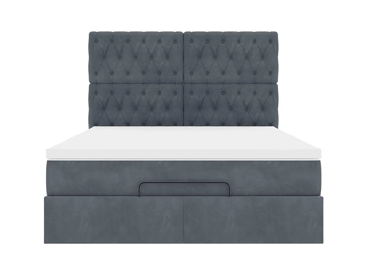 Cadre de lit ottoman avec matelas gris foncé 140x190 cm velours