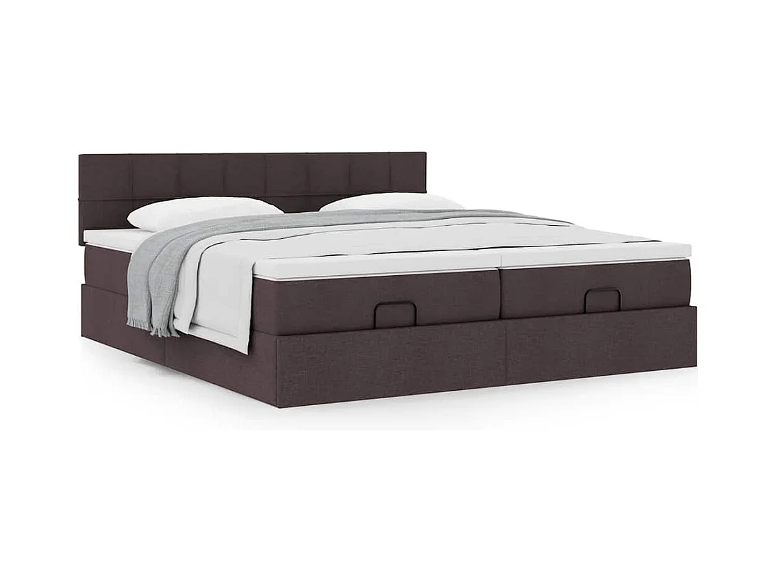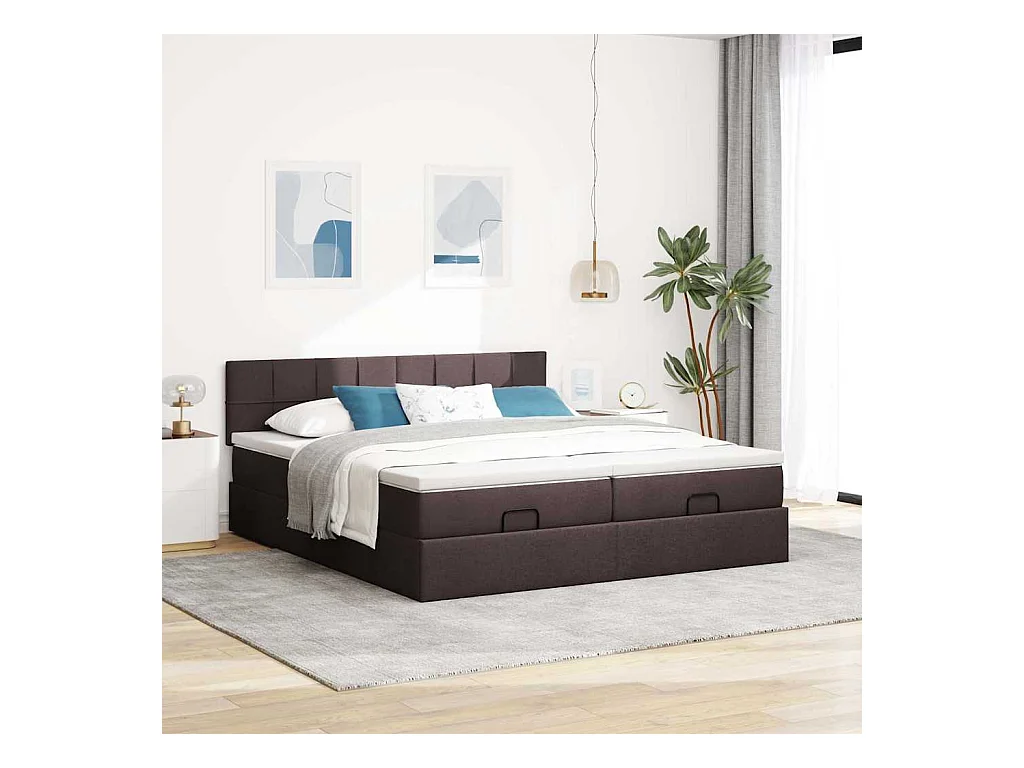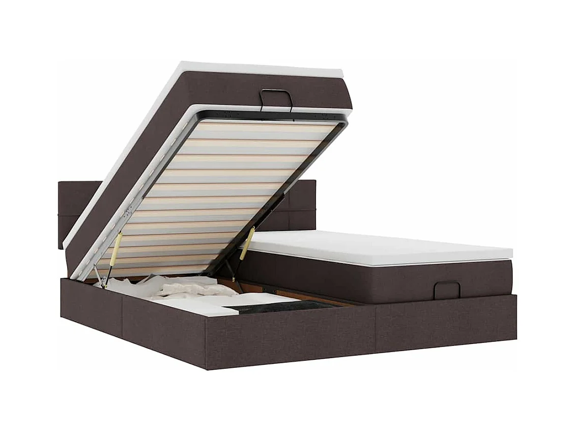 Cadre de lit ottoman avec matelas marron foncé 160x200 cm tissu