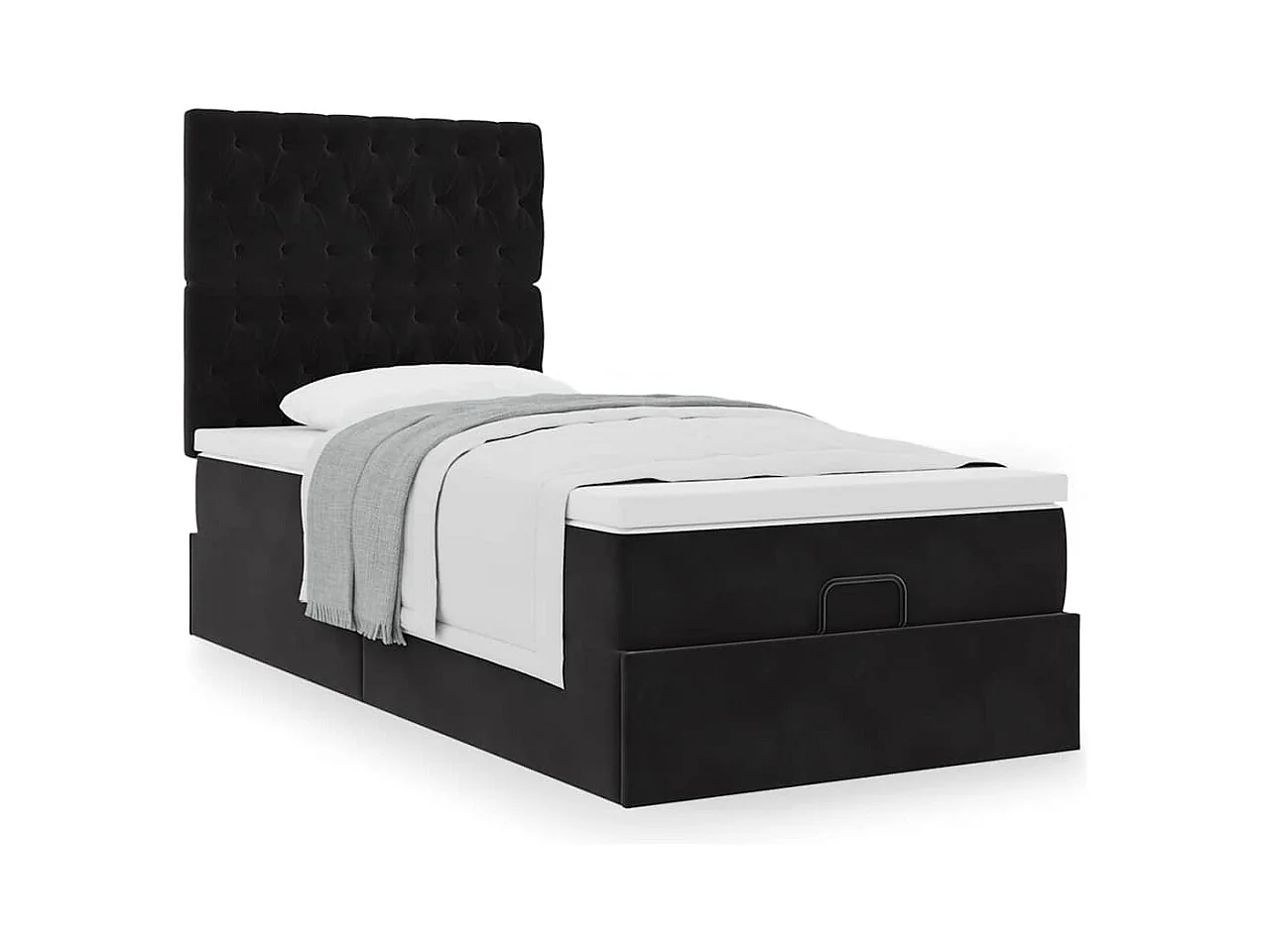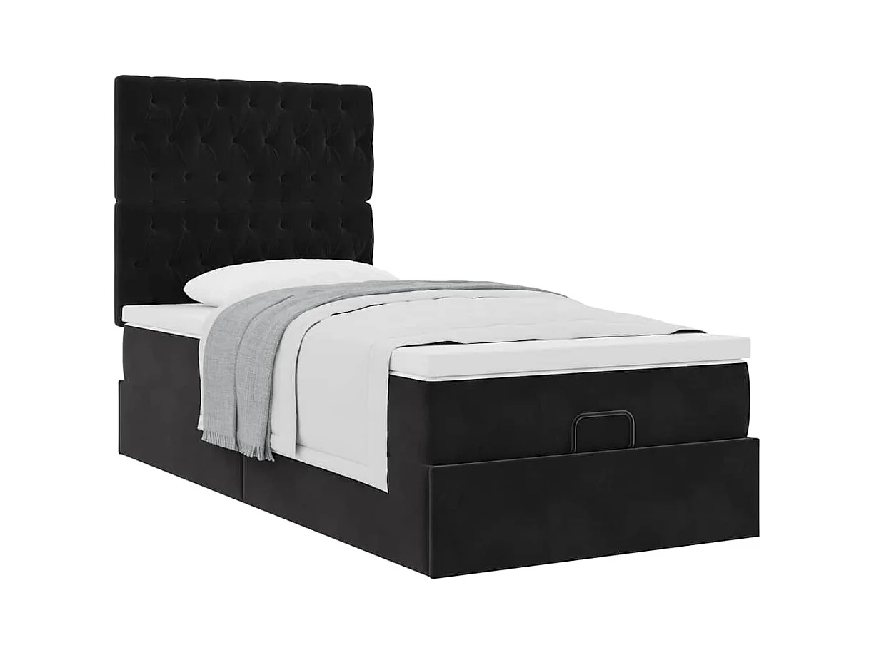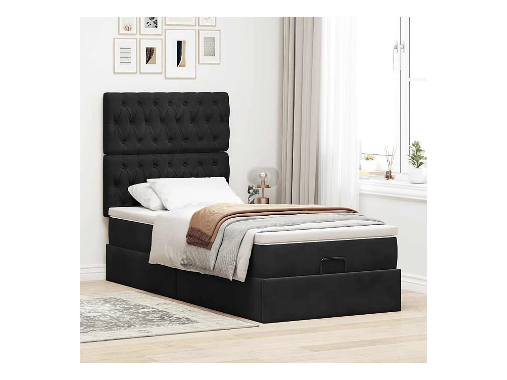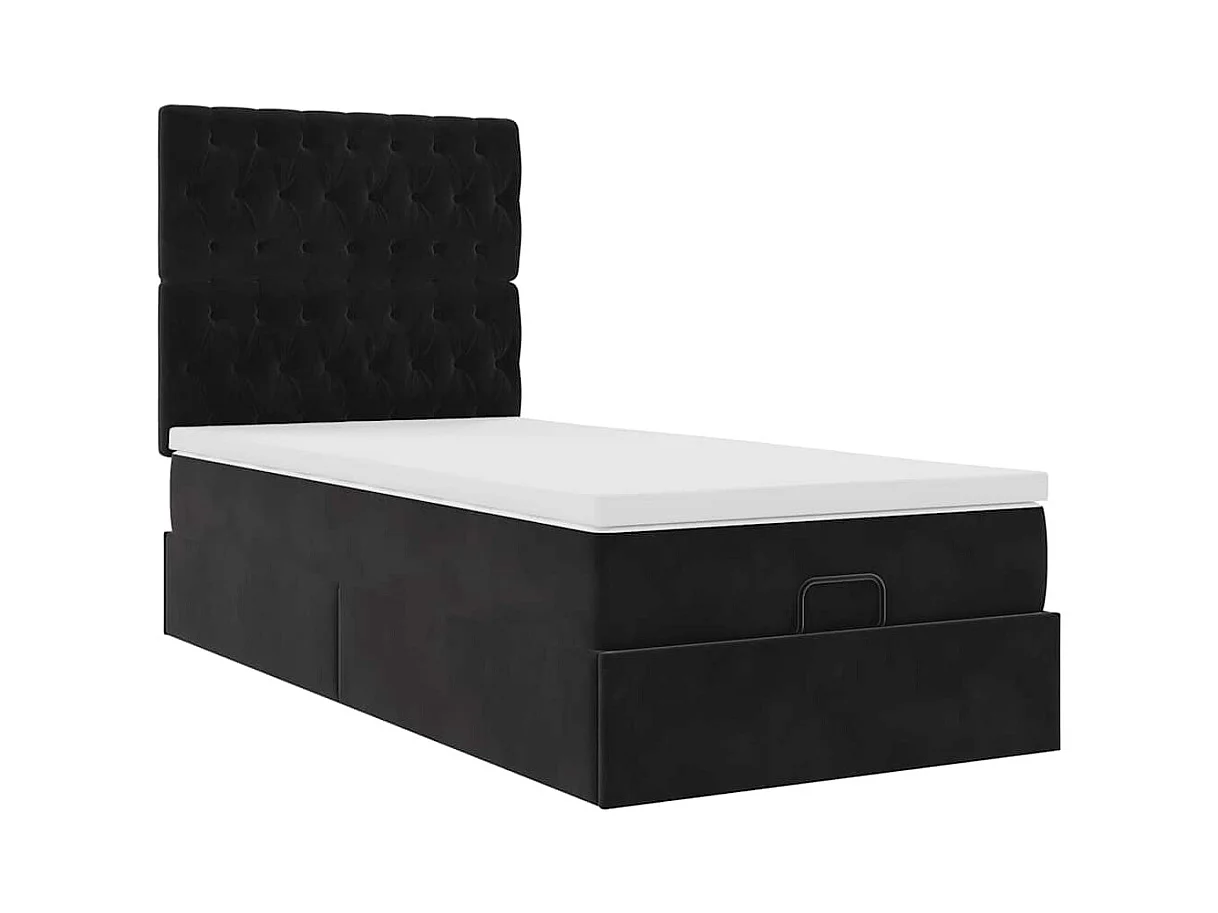 Cadre de lit ottoman avec matelas noir 90x190 cm velours