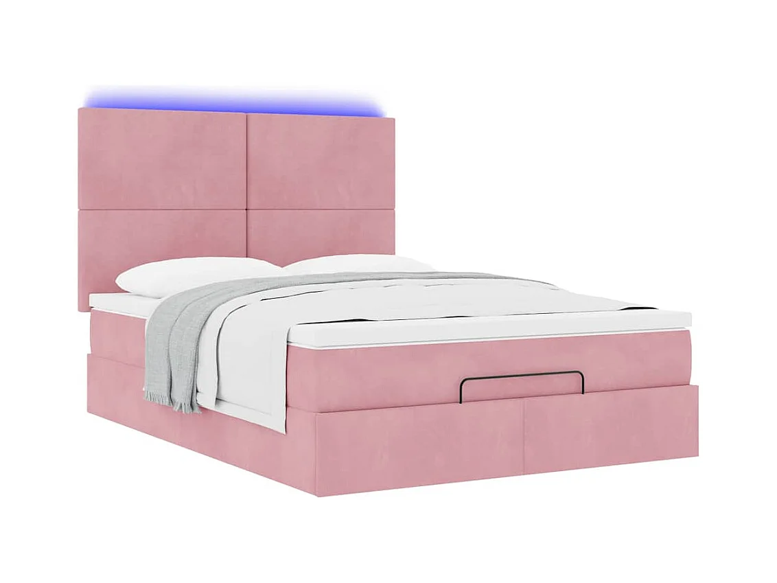 Cadre de lit ottoman avec matelas rose 140x190 cm velours