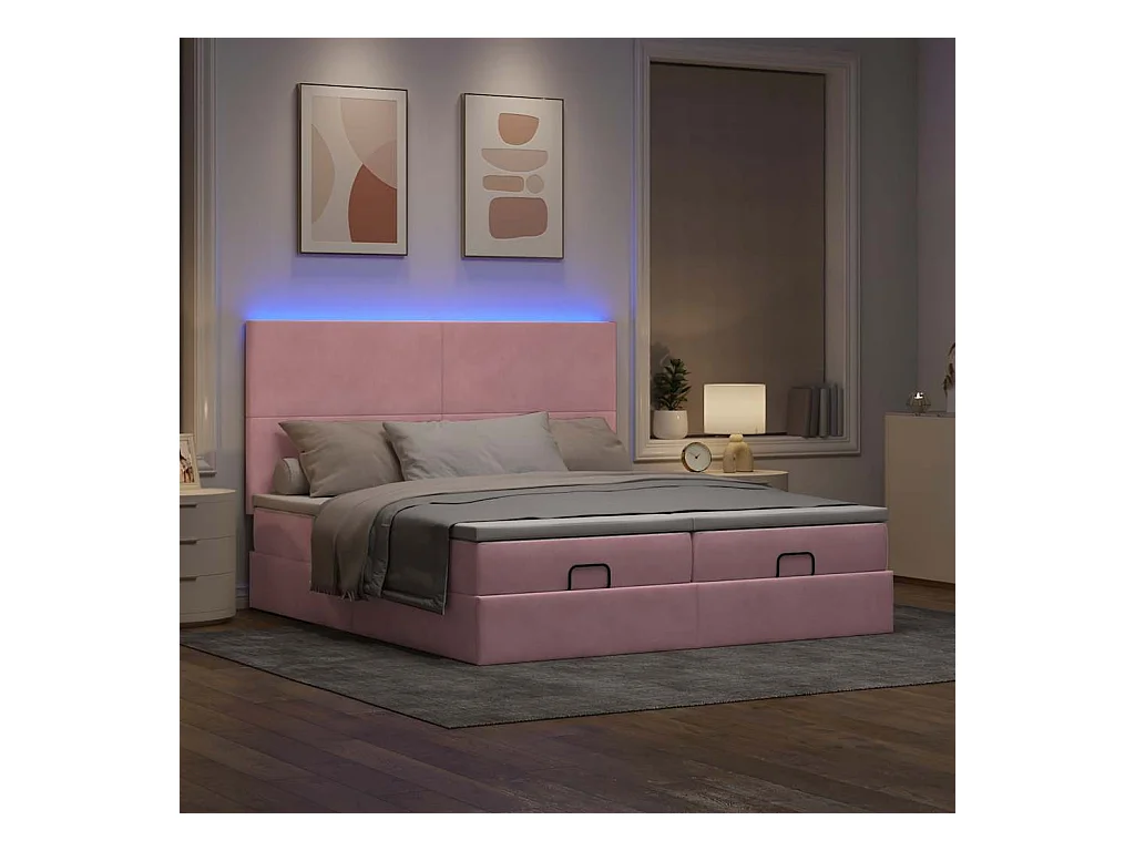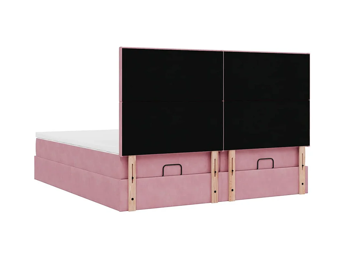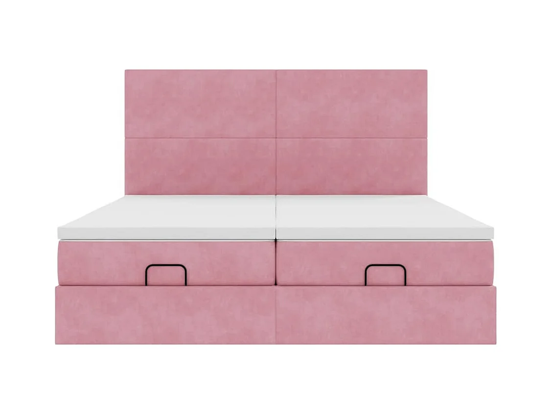 Cadre de lit ottoman avec matelas rose 160x200 cm velours