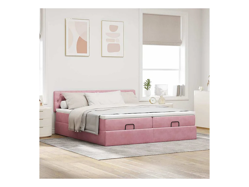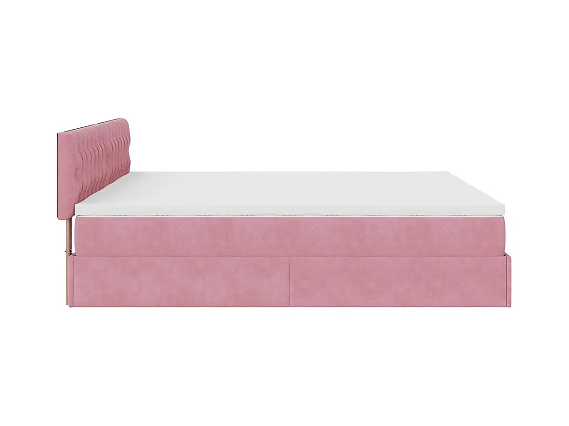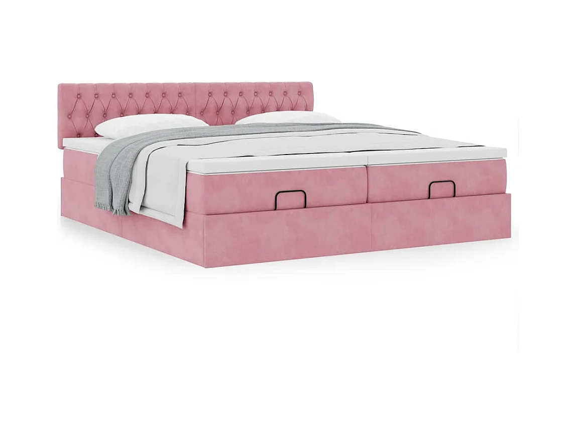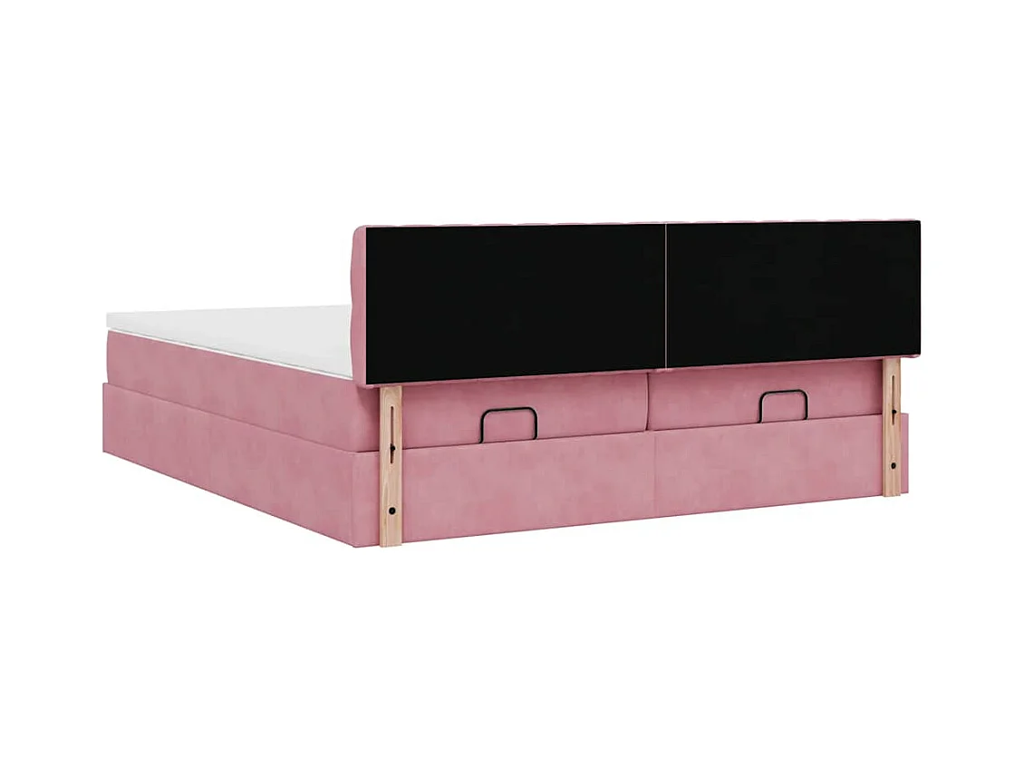 Cadre de lit ottoman avec matelas rose 160x200 cm velours