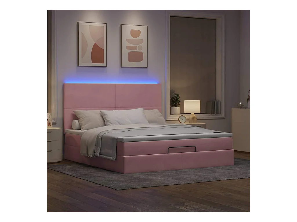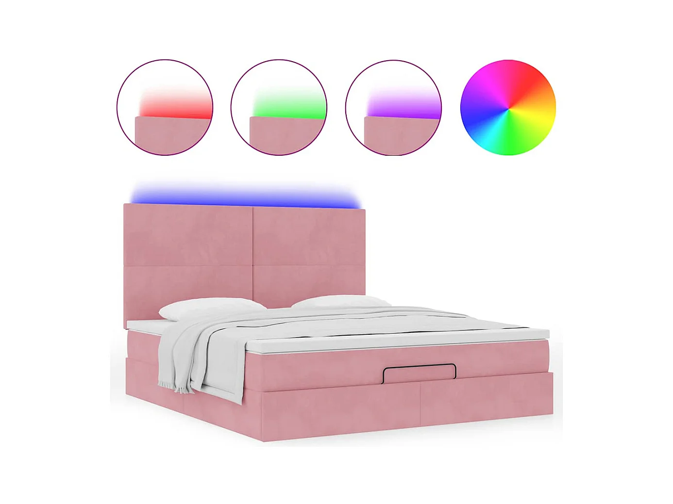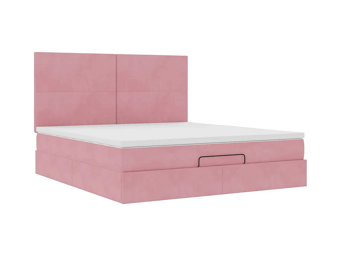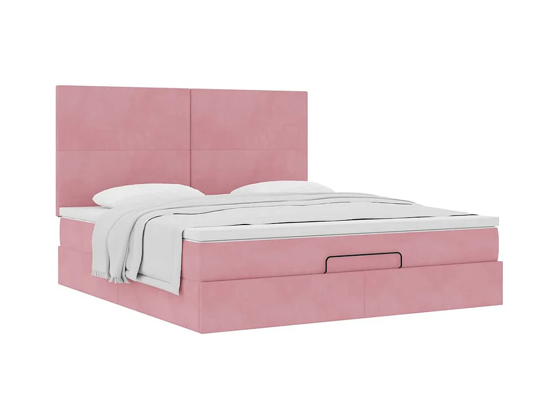 Cadre de lit ottoman avec matelas rose 180x200 cm velours