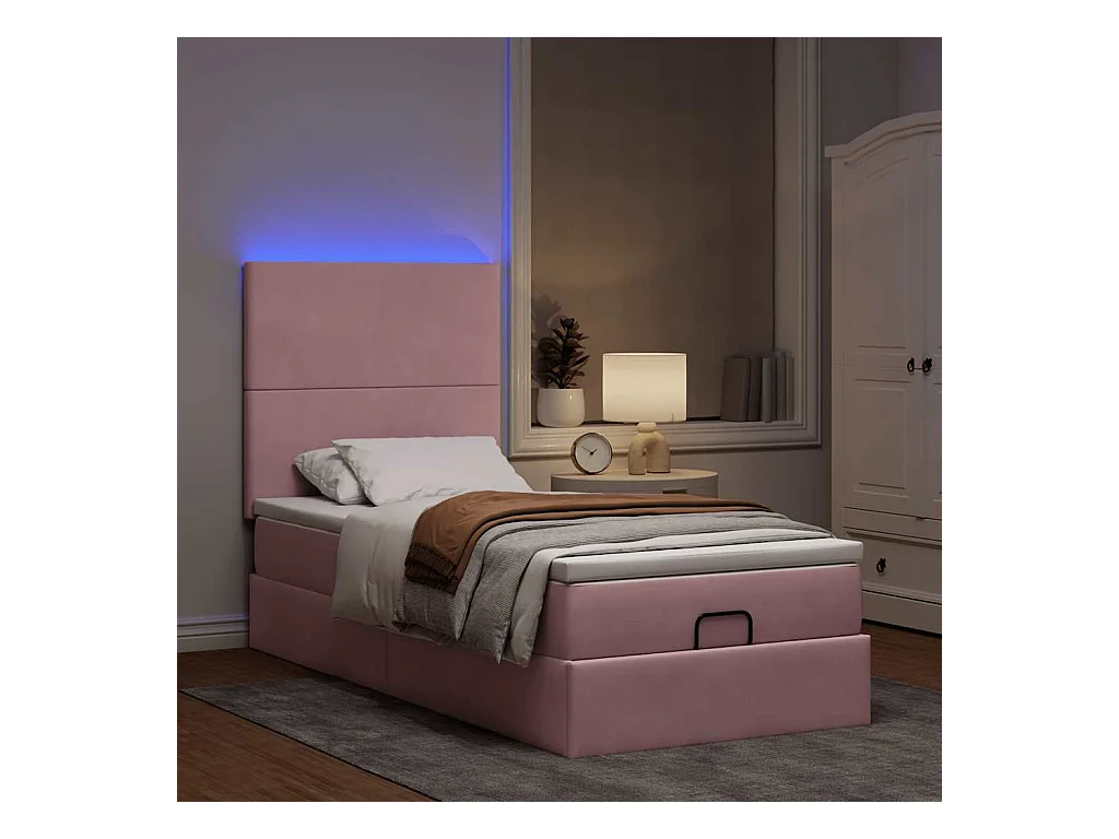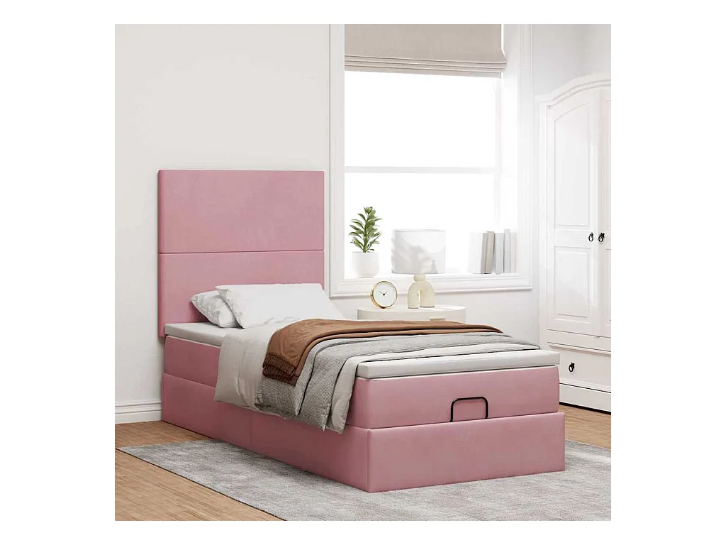 Cadre de lit ottoman avec matelas rose 90x190 cm velours