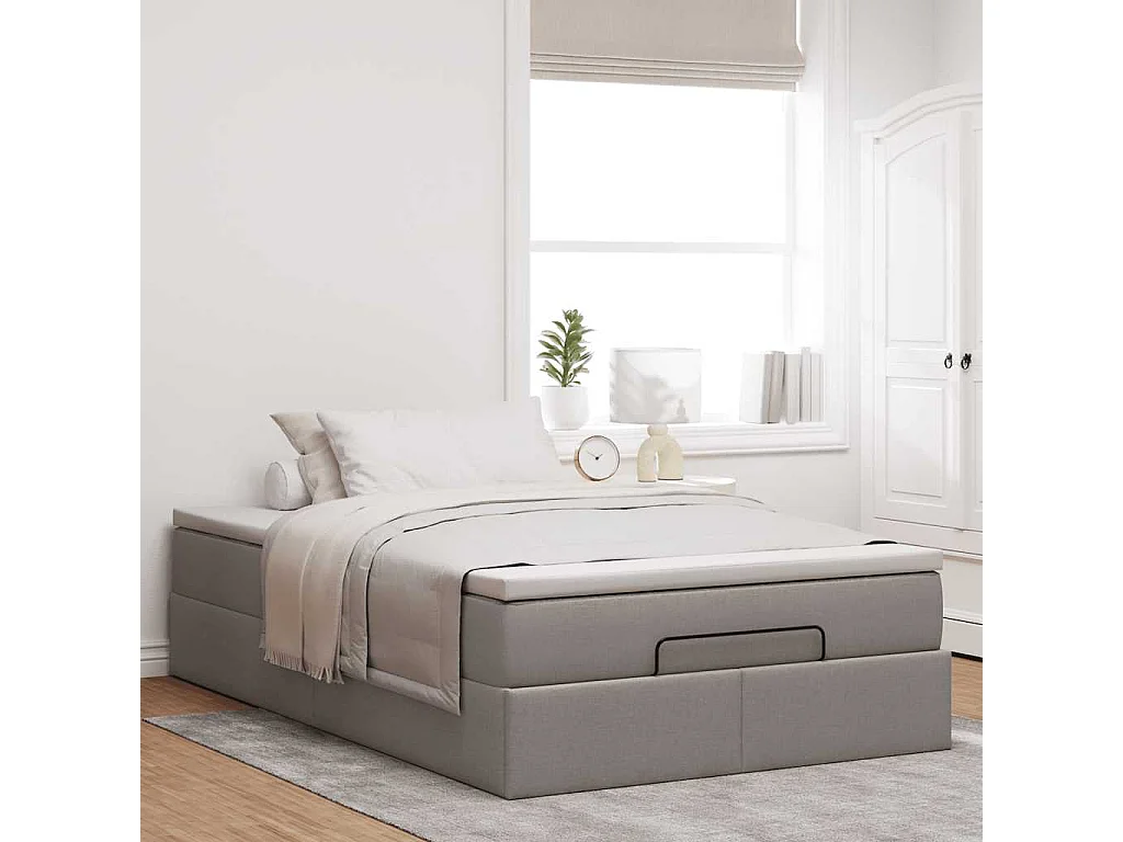 Cadre de lit ottoman avec matelas taupe 120x190 cm tissu