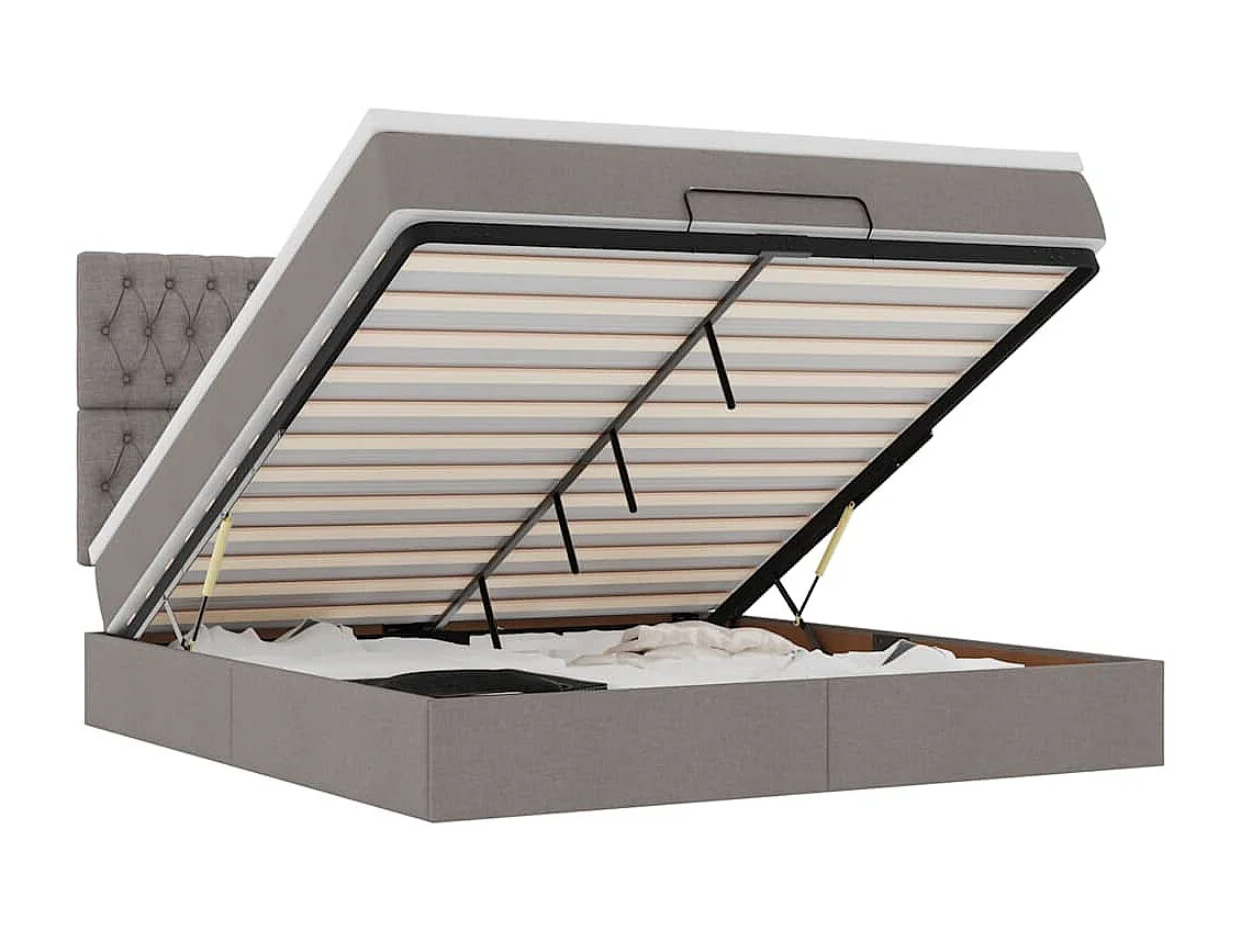 Cadre de lit ottoman avec matelas taupe 180x200 cm tissu