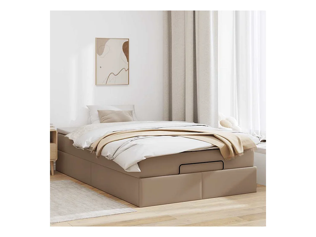 Cadre de lit ottoman et matelas cappuccino 120x200cm similicuir