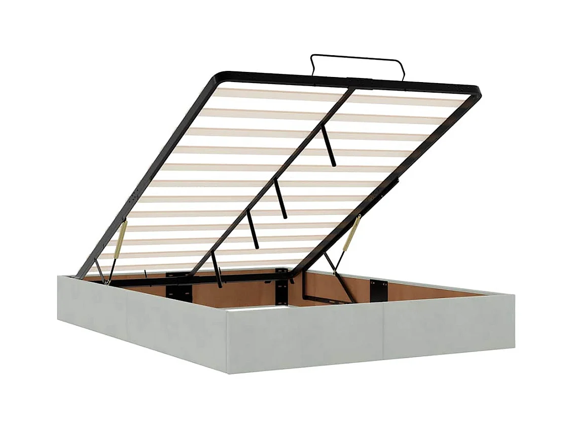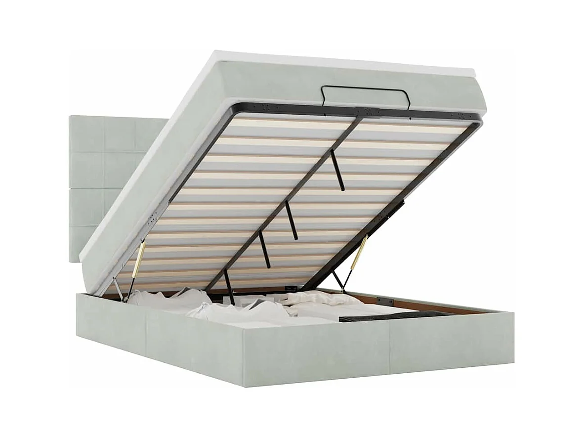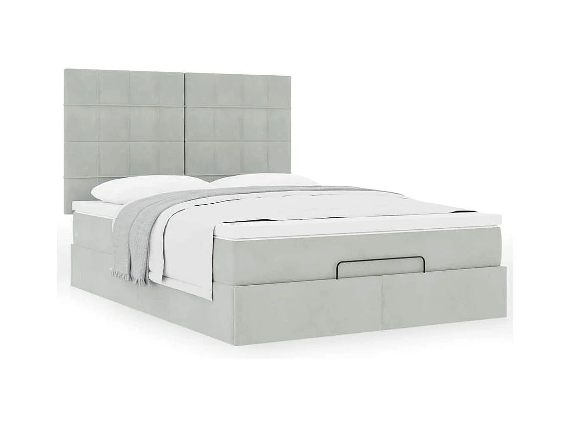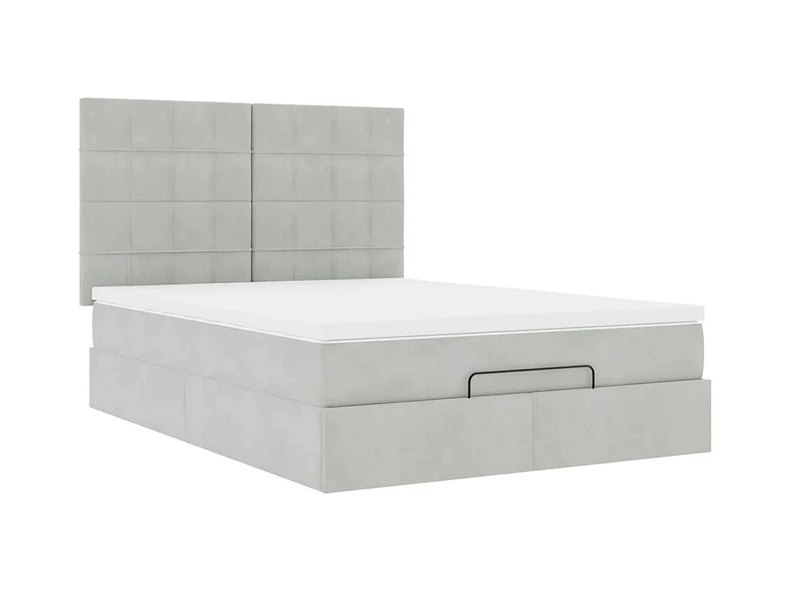 Cadre de lit ottoman et matelas gris clair 140x190 velours