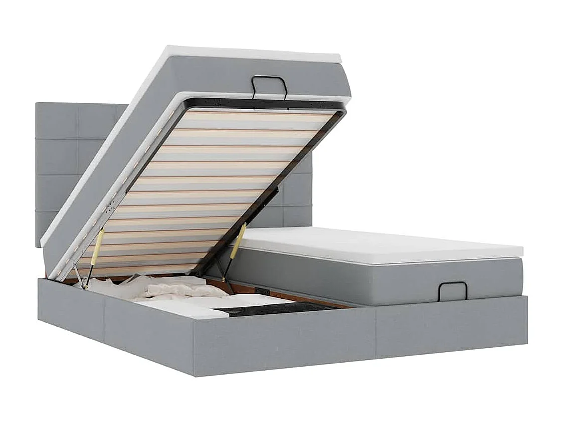 Cadre de lit ottoman et matelas gris clair 200x200cm tissu
