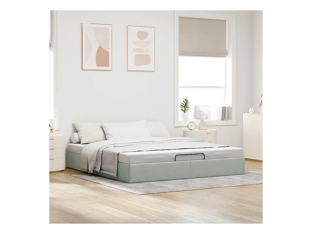 Cadre de lit ottoman sans matelas gris clair 160x200 cm velours