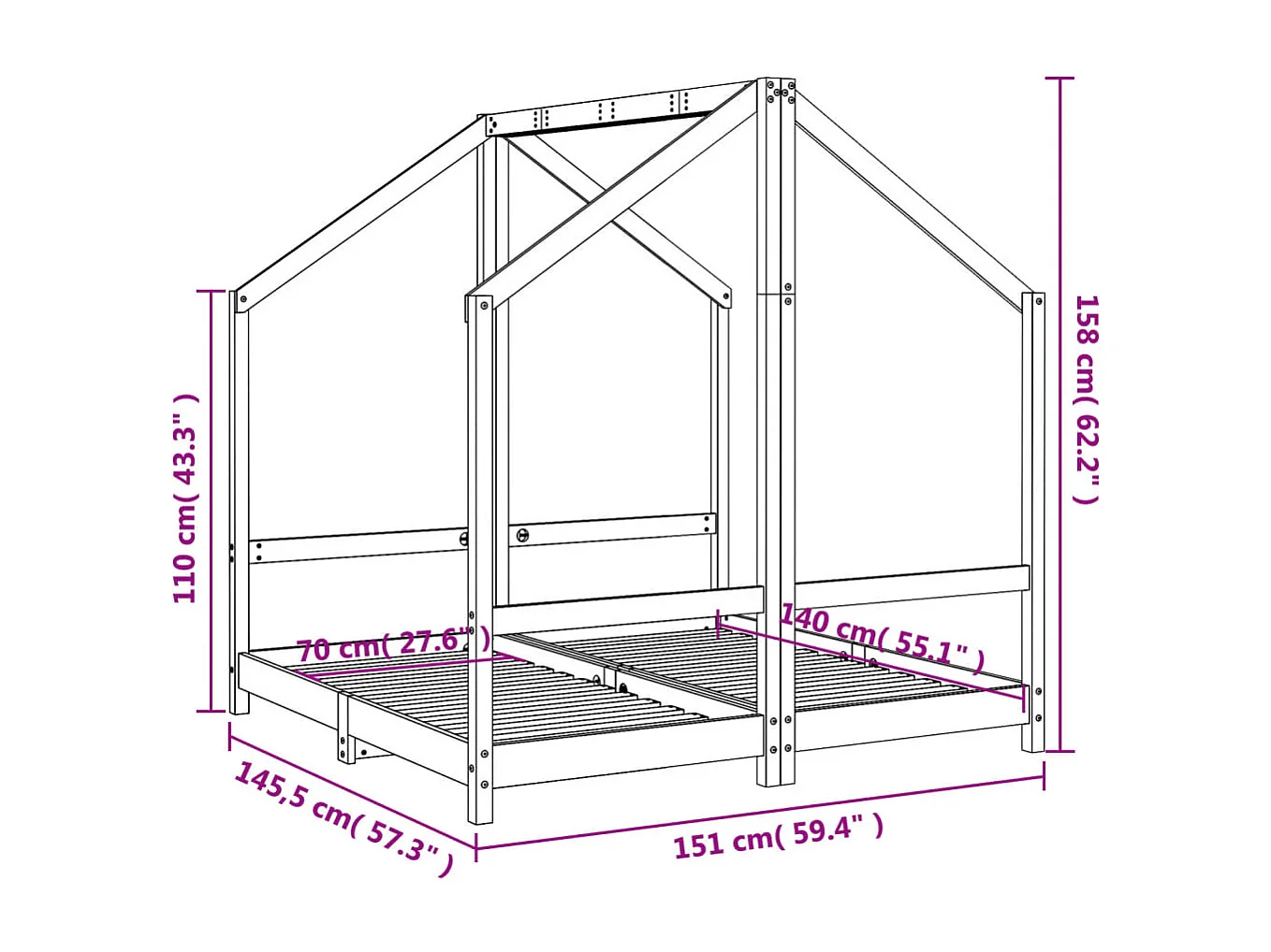 Cadre de lit pour enfant 2x(70x140) cm bois de pin massif