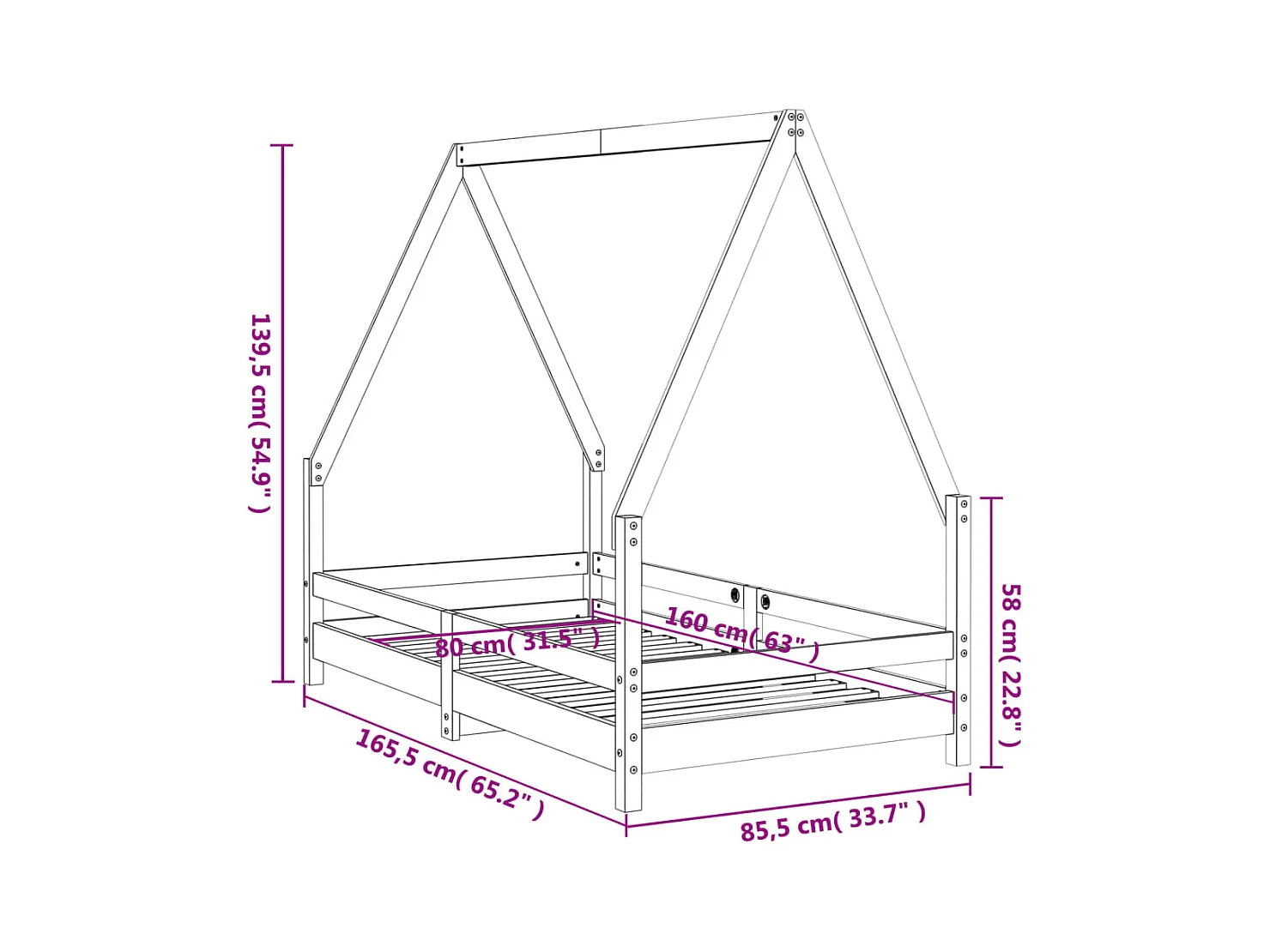 Cadre de lit d'enfants forme de maison sans matelas 80x160 cm