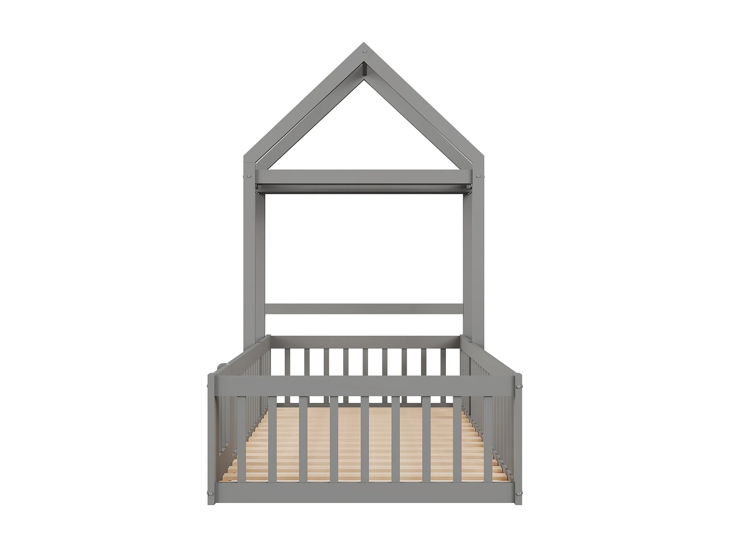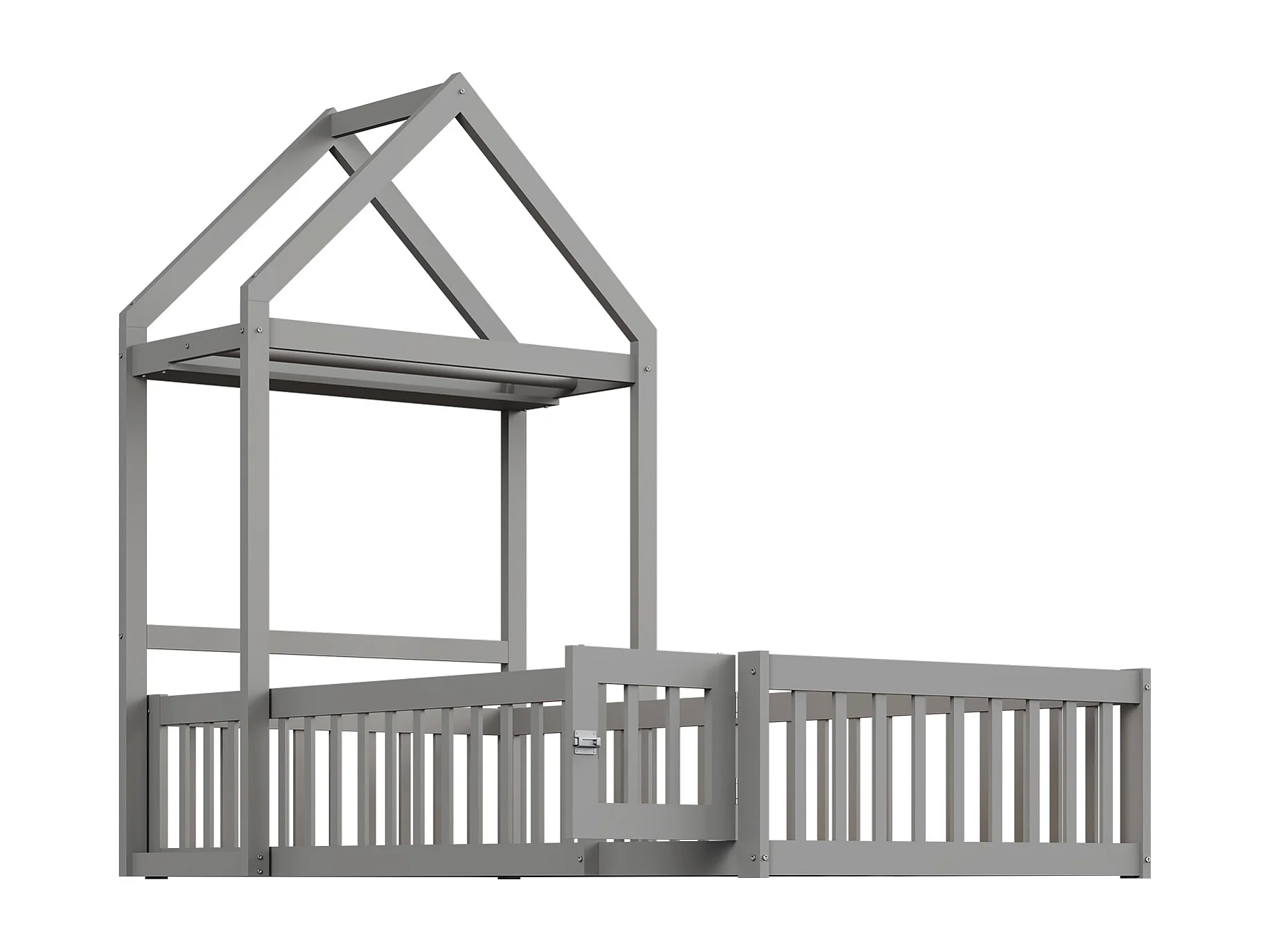 Cadre de lit pour enfant - 90 x 200 cm - avec rangement + barrière de sécurité + portes - bois - gris