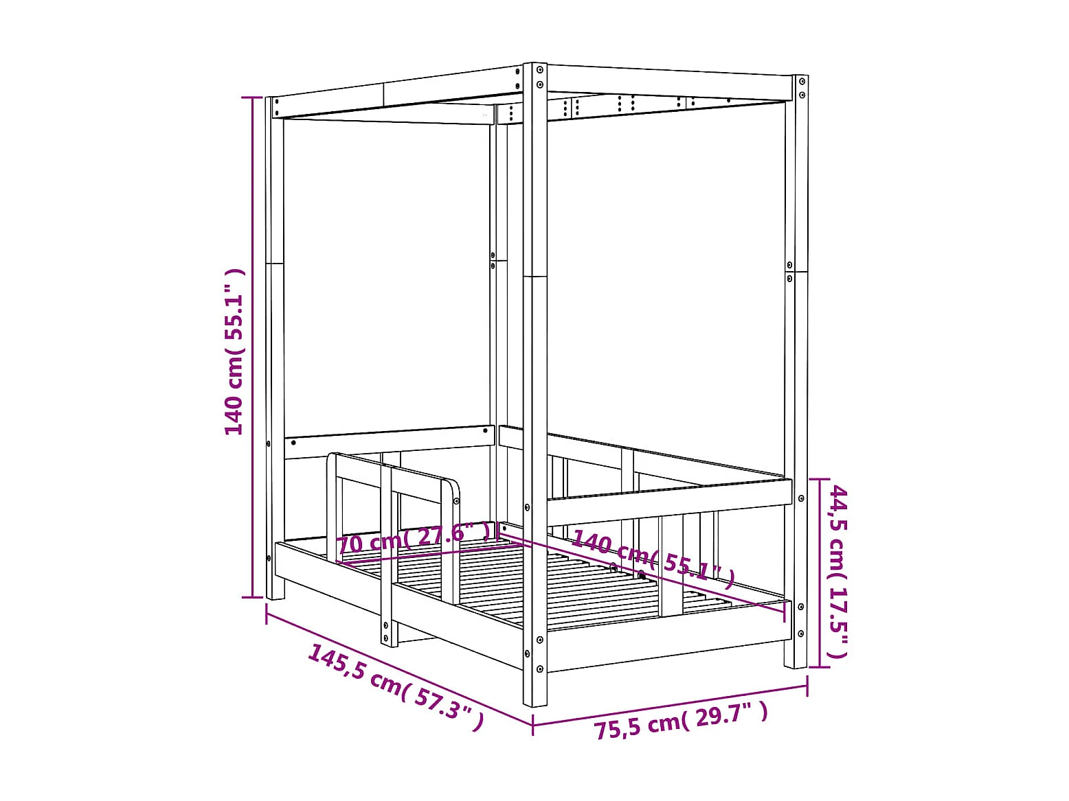 Cadre de lit pour enfant blanc 70x140 bois de pin massif