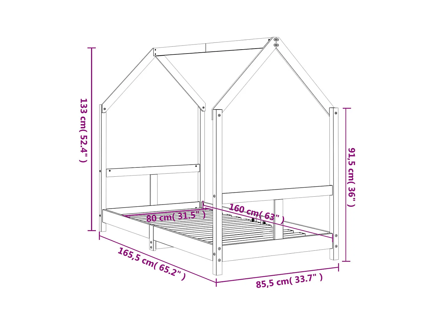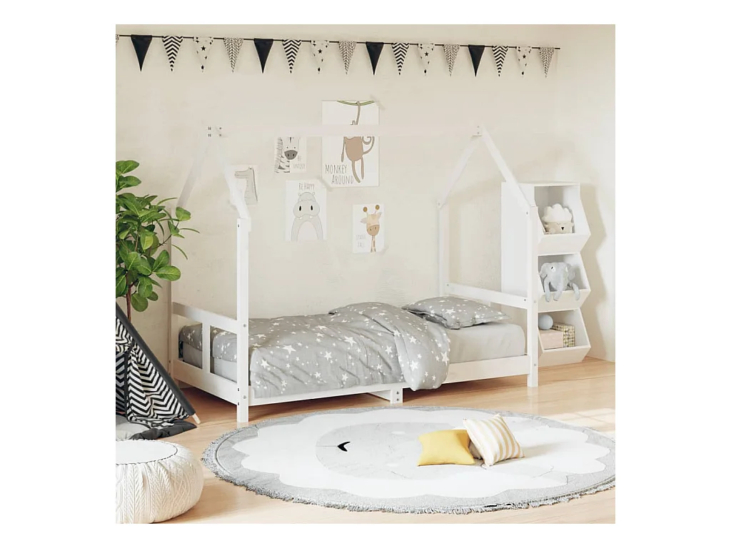 Cadre de lit pour enfant blanc 80x160 bois de pin massif