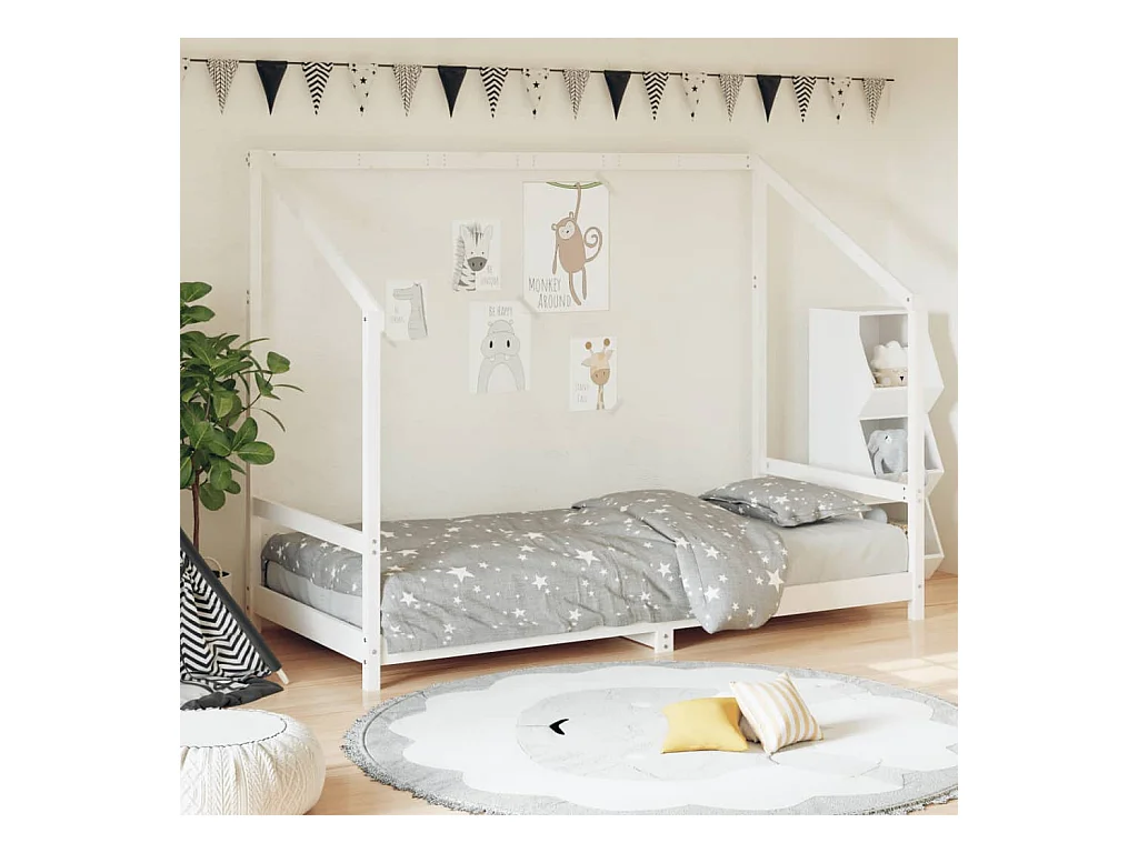 Cadre de lit pour enfants blanc 90x190 bois de pin massif
