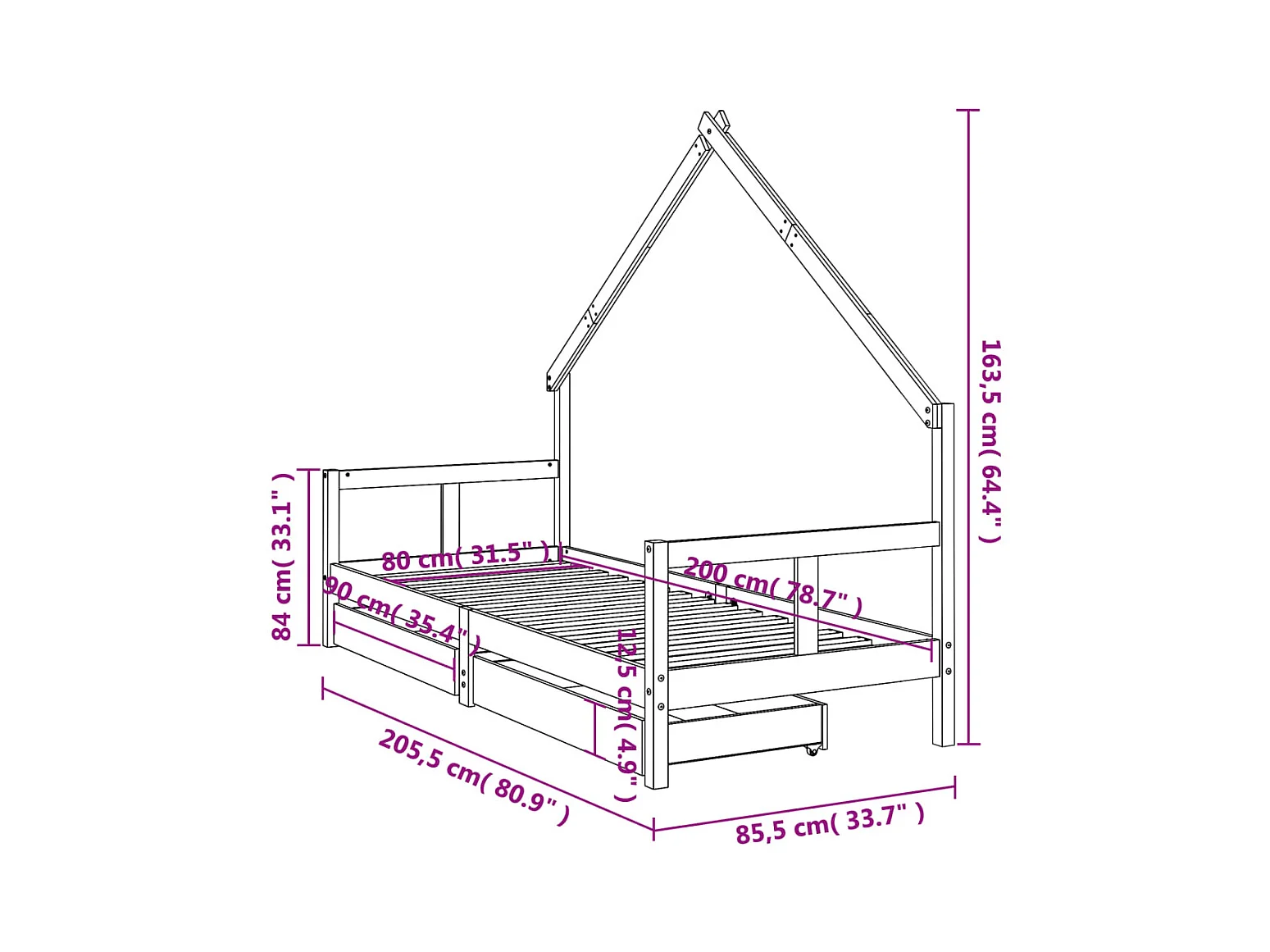 Cadre de lit pour enfants gris 80x200 bois de pin massif