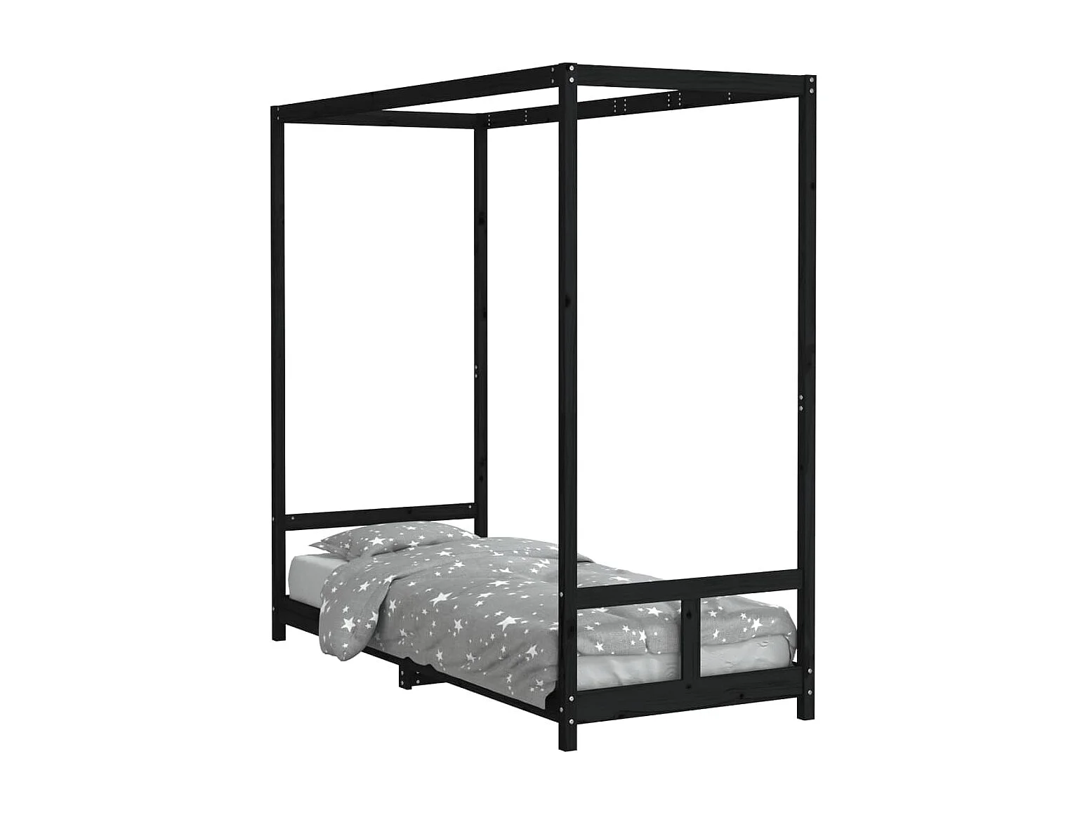 Cadre de lit pour enfants noir 80x200 bois de pin massif