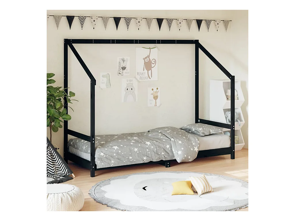 Cadre de lit pour enfants noir 80x200 bois de pin massif