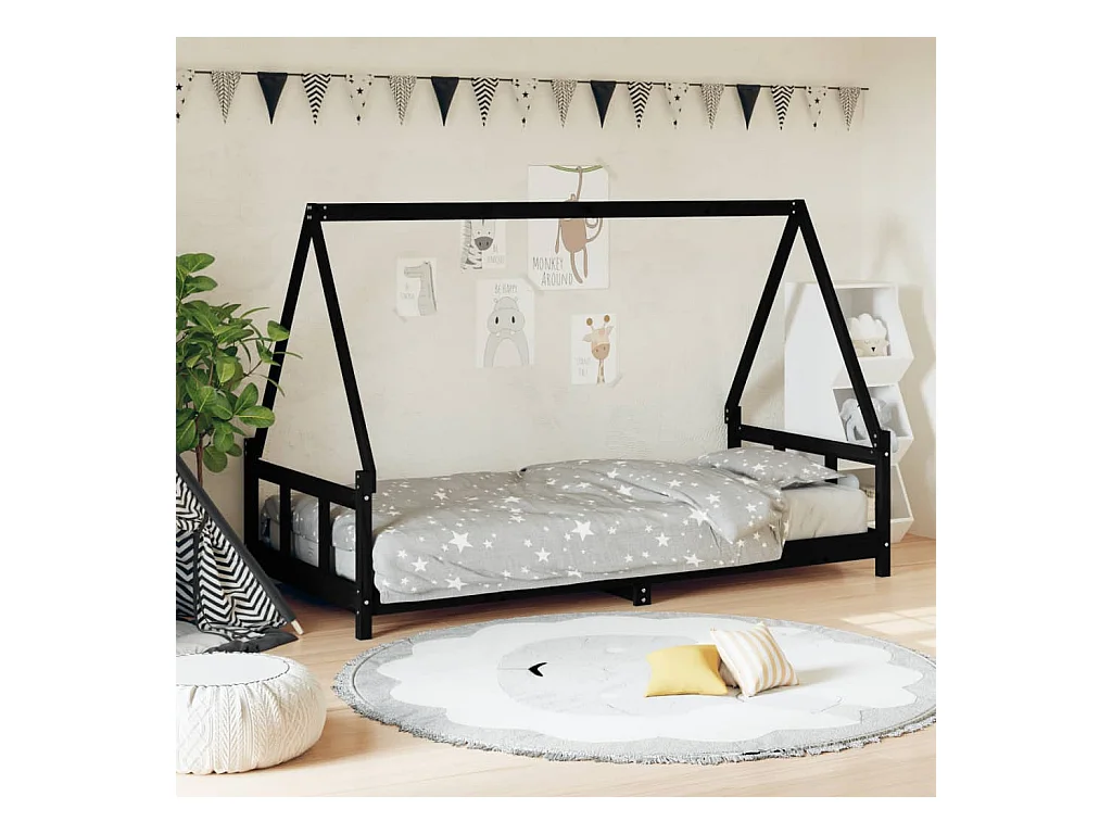 Cadre de lit pour enfants noir 90x190 bois de pin massif